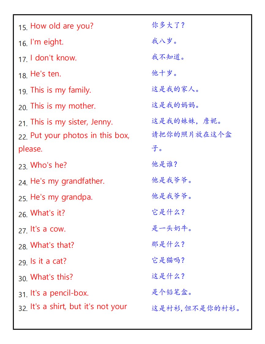 【2025秋新版】三年级英语上册《重点句子》中英文对照_共4页