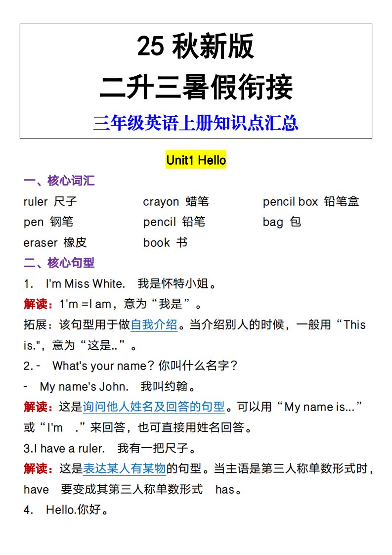 当前位置: 首页小学资源小学三年级正文 【2025秋新版】三年级英语上册知识点汇总_共6页 小学三年级 1 周前 0 0 5 以上为部分内容预览,如需源文档请登录您的会员账号进行下载! 声明:本站所有文章,如无特殊说明或标注,均为本站原创发布。任何个人或组织,在未征得本站同意时,禁止复制、盗用、采集、发布本站内容到任何网站、书籍等各类媒体平台。如若本站内容侵犯了原著者的合法权益,可联系我们进行处理。 尚学资源永久会员 打赏 收藏 海报 链接