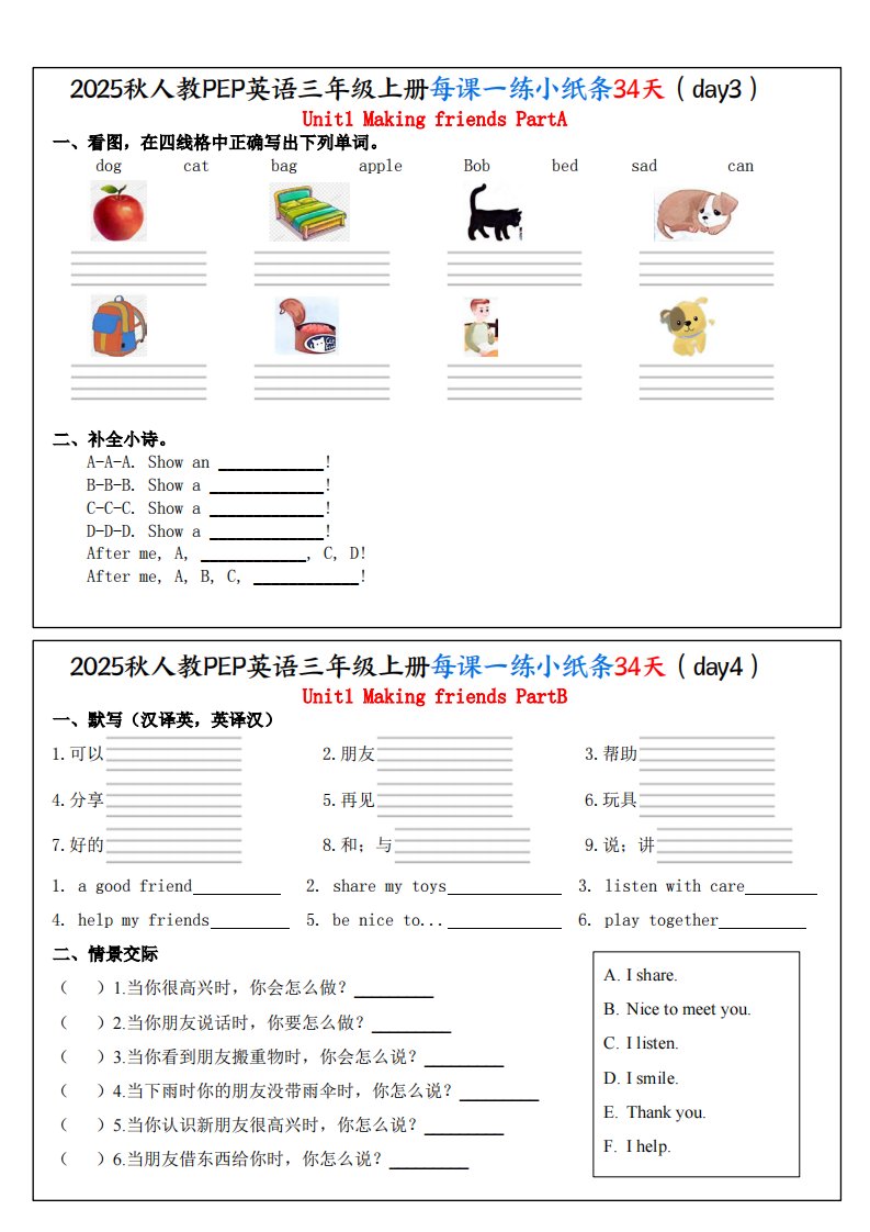 当前位置: 首页小学资源小学三年级正文 25秋人教PEP三上英语每课一练小纸条34天(含答案25页)_共25页 小学三年级 1 周前 0 0 15 以上为部分内容预览,如需源文档请登录您的会员账号进行下载! 声明:本站所有文章,如无特殊说明或标注,均为本站原创发布。任何个人或组织,在未征得本站同意时,禁止复制、盗用、采集、发布本站内容到任何网站、书籍等各类媒体平台。如若本站内容侵犯了原著者的合法权益,可联系我们进行处理。 尚学资源永久会员 打赏 收藏 海报 链接