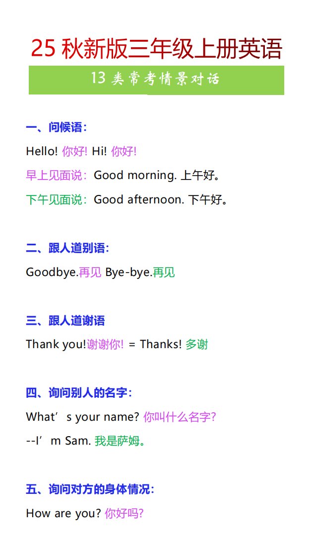 当前位置: 首页小学资源小学三年级正文 【2025秋新版】三年级上册英语13类常考情景对话_共3页 小学三年级 1 周前 0 0 5 以上为部分内容预览,如需源文档请登录您的会员账号进行下载! 声明:本站所有文章,如无特殊说明或标注,均为本站原创发布。任何个人或组织,在未征得本站同意时,禁止复制、盗用、采集、发布本站内容到任何网站、书籍等各类媒体平台。如若本站内容侵犯了原著者的合法权益,可联系我们进行处理。 尚学资源永久会员 打赏 收藏 海报 链接