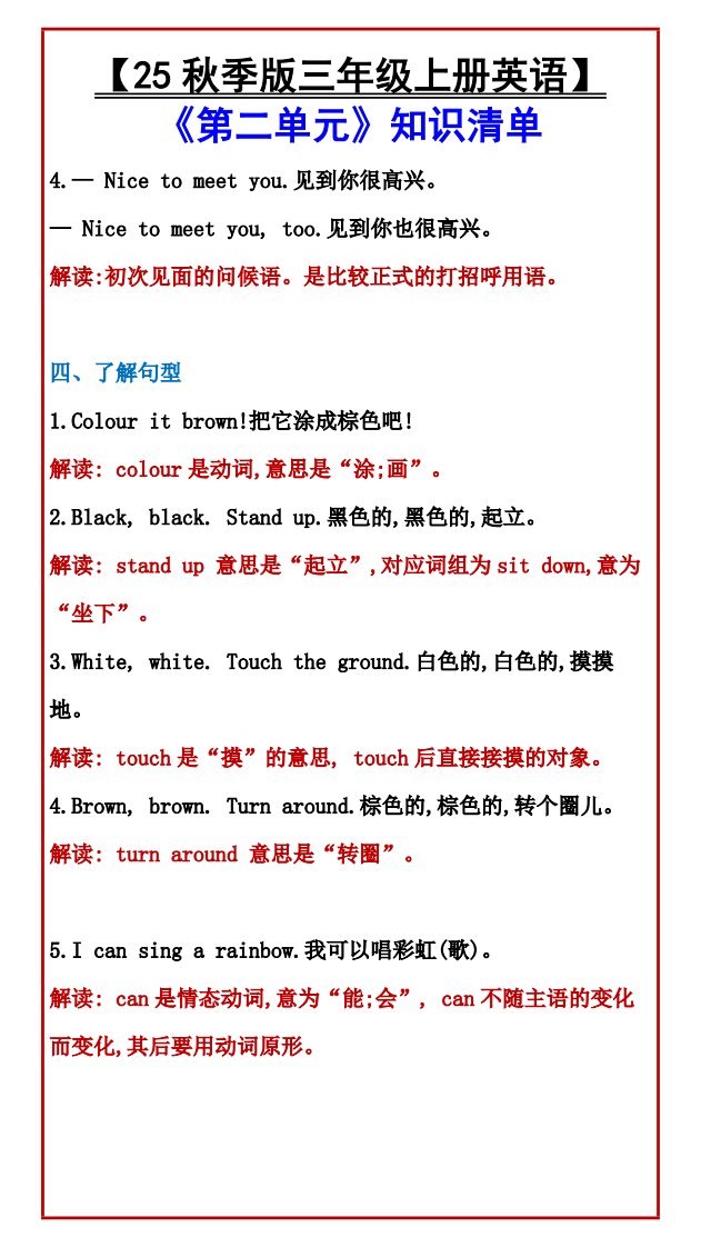 当前位置: 首页小学资源小学三年级正文 【2025秋新版】【三年级上册英语】《第二单元》知识清单_共2页 小学三年级 1 周前 0 0 5 以上为部分内容预览,如需源文档请登录您的会员账号进行下载! 声明:本站所有文章,如无特殊说明或标注,均为本站原创发布。任何个人或组织,在未征得本站同意时,禁止复制、盗用、采集、发布本站内容到任何网站、书籍等各类媒体平台。如若本站内容侵犯了原著者的合法权益,可联系我们进行处理。 尚学资源永久会员 打赏 收藏 海报 链接