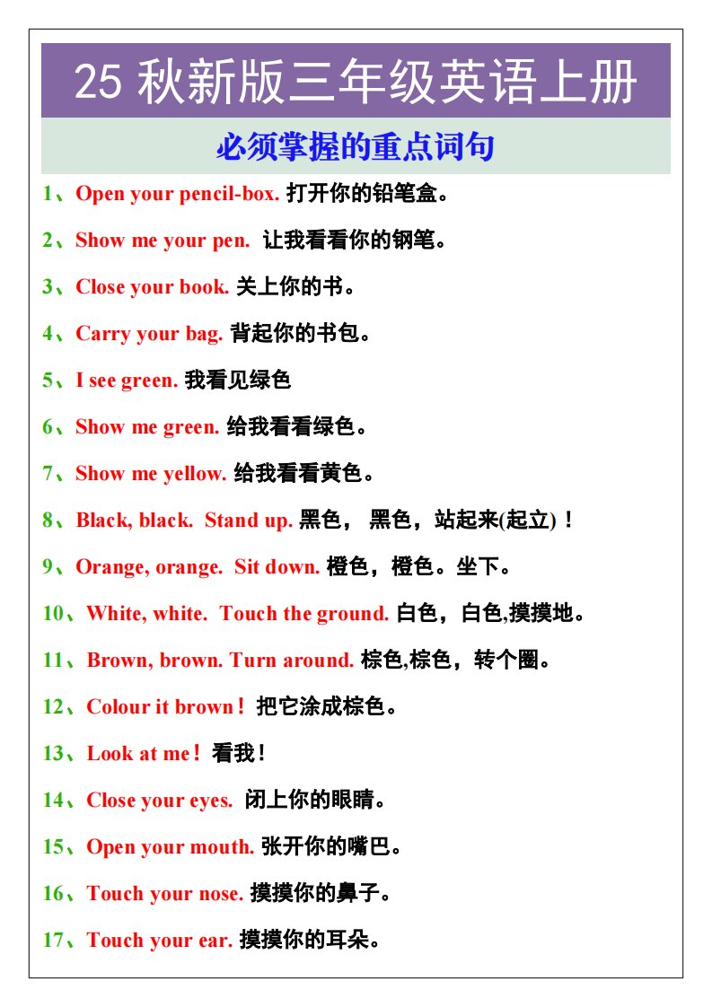 当前位置: 首页小学资源小学三年级正文 【2025秋新版】三年级英语上册必须掌握的重点词句_共3页 小学三年级 1 周前 0 0 5 以上为部分内容预览,如需源文档请登录您的会员账号进行下载! 声明:本站所有文章,如无特殊说明或标注,均为本站原创发布。任何个人或组织,在未征得本站同意时,禁止复制、盗用、采集、发布本站内容到任何网站、书籍等各类媒体平台。如若本站内容侵犯了原著者的合法权益,可联系我们进行处理。 尚学资源永久会员 打赏 收藏 海报 链接
