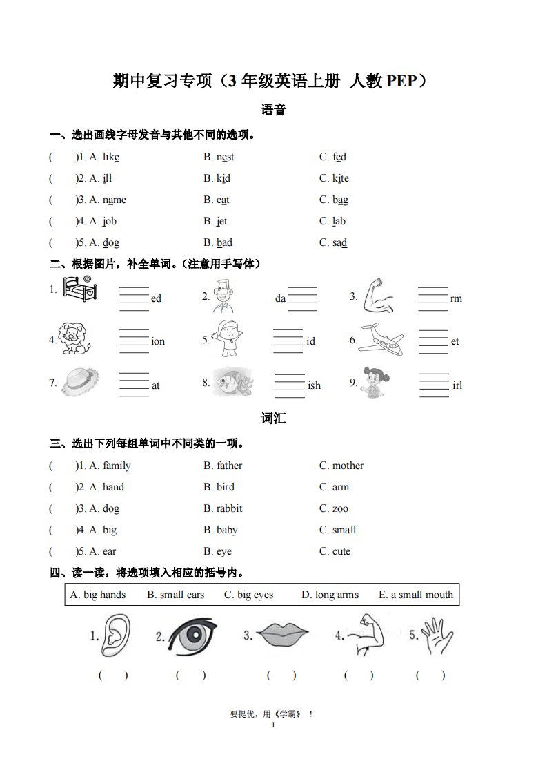 当前位置: 首页小学资源小学三年级正文 期中复习专项(三上英语人教版)_共5页 小学三年级 1 周前 0 0 5 以上为部分内容预览,如需源文档请登录您的会员账号进行下载! 声明:本站所有文章,如无特殊说明或标注,均为本站原创发布。任何个人或组织,在未征得本站同意时,禁止复制、盗用、采集、发布本站内容到任何网站、书籍等各类媒体平台。如若本站内容侵犯了原著者的合法权益,可联系我们进行处理。 尚学资源永久会员 打赏 收藏 海报 链接