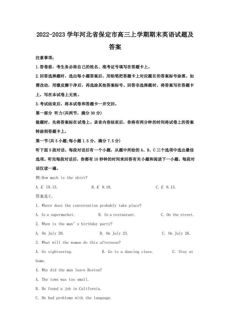 当前位置: 首页小学资源小学三年级正文 2022-2023学年河北省保定市高三上学期期末英语试题及答案(Word版)_共28页 小学三年级 1 周前 0 0 15 以上为部分内容预览,如需源文档请登录您的会员账号进行下载! 声明:本站所有文章,如无特殊说明或标注,均为本站原创发布。任何个人或组织,在未征得本站同意时,禁止复制、盗用、采集、发布本站内容到任何网站、书籍等各类媒体平台。如若本站内容侵犯了原著者的合法权益,可联系我们进行处理。 尚学资源永久会员 打赏 收藏 海报 链接
