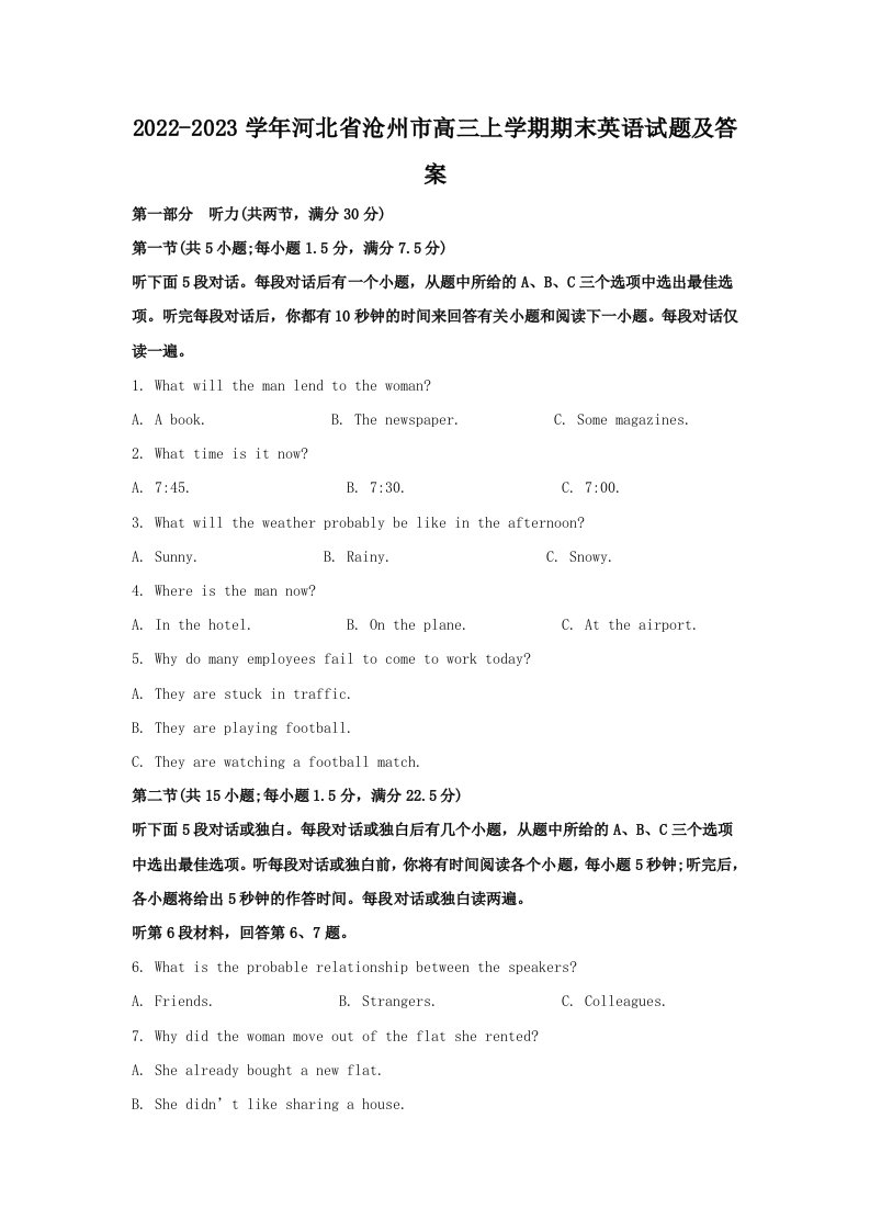 当前位置: 首页小学资源小学三年级正文 2022-2023学年河北省沧州市高三上学期期末英语试题及答案(Word版)_共25页 小学三年级 1 周前 0 0 15 以上为部分内容预览,如需源文档请登录您的会员账号进行下载! 声明:本站所有文章,如无特殊说明或标注,均为本站原创发布。任何个人或组织,在未征得本站同意时,禁止复制、盗用、采集、发布本站内容到任何网站、书籍等各类媒体平台。如若本站内容侵犯了原著者的合法权益,可联系我们进行处理。 尚学资源永久会员 打赏 收藏 海报 链接