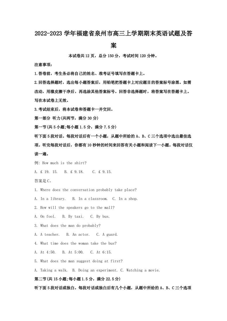 当前位置: 首页小学资源小学三年级正文 2022-2023学年福建省泉州市高三上学期期末英语试题及答案(Word版)_共28页 小学三年级 1 周前 0 0 15 以上为部分内容预览,如需源文档请登录您的会员账号进行下载! 声明:本站所有文章,如无特殊说明或标注,均为本站原创发布。任何个人或组织,在未征得本站同意时,禁止复制、盗用、采集、发布本站内容到任何网站、书籍等各类媒体平台。如若本站内容侵犯了原著者的合法权益,可联系我们进行处理。 尚学资源永久会员 打赏 收藏 海报 链接