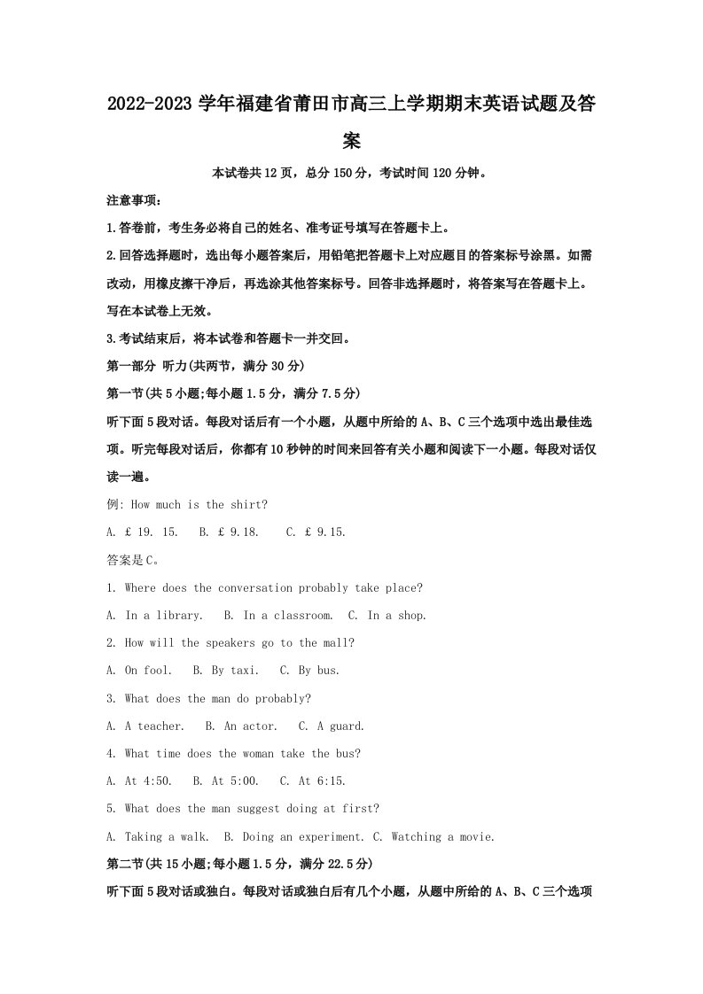 当前位置: 首页小学资源小学三年级正文 2022-2023学年福建省莆田市高三上学期期末英语试题及答案(Word版)_共28页 小学三年级 1 周前 0 0 15 以上为部分内容预览,如需源文档请登录您的会员账号进行下载! 声明:本站所有文章,如无特殊说明或标注,均为本站原创发布。任何个人或组织,在未征得本站同意时,禁止复制、盗用、采集、发布本站内容到任何网站、书籍等各类媒体平台。如若本站内容侵犯了原著者的合法权益,可联系我们进行处理。 尚学资源永久会员 打赏 收藏 海报 链接