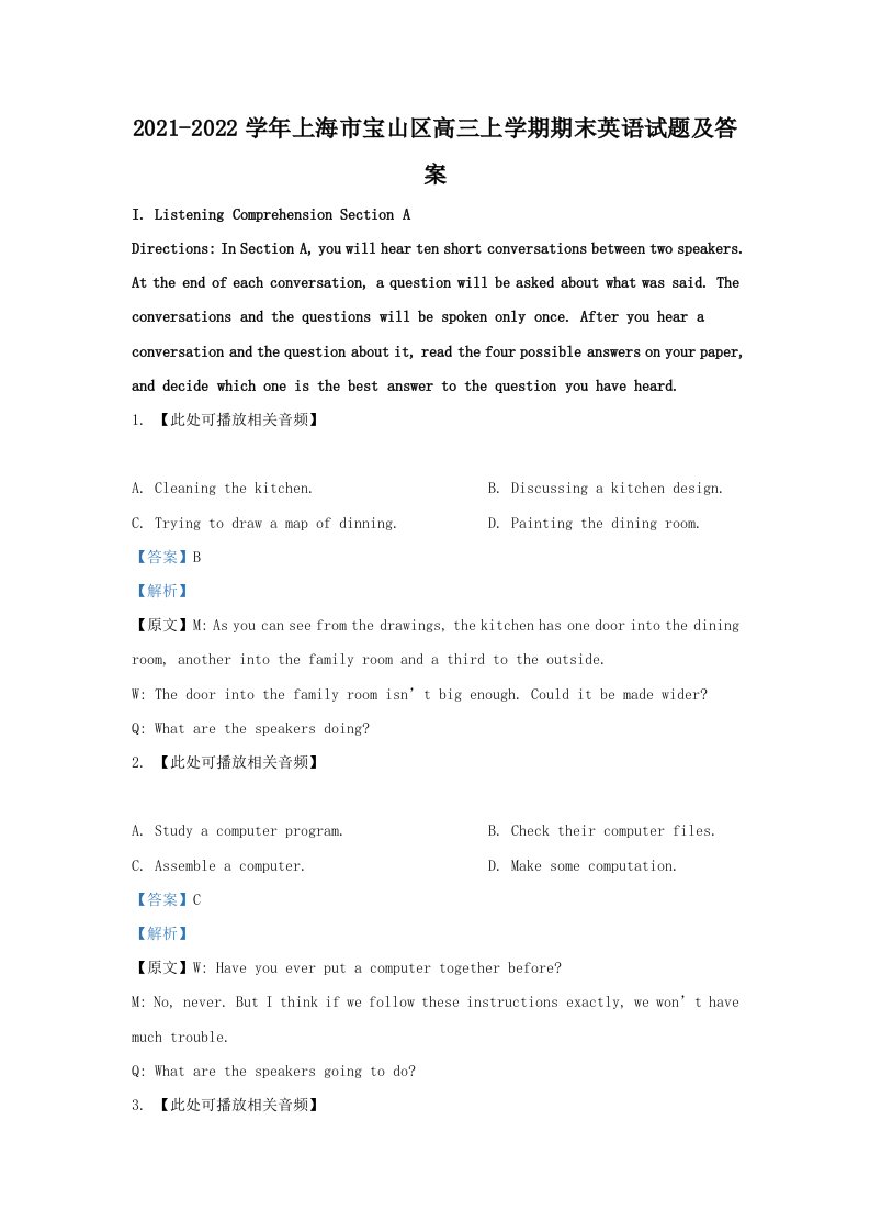当前位置: 首页小学资源小学三年级正文 2021-2022学年上海市宝山区高三上学期期末英语试题及答案(Word版)_共41页 小学三年级 1 周前 0 0 15 以上为部分内容预览,如需源文档请登录您的会员账号进行下载! 声明:本站所有文章,如无特殊说明或标注,均为本站原创发布。任何个人或组织,在未征得本站同意时,禁止复制、盗用、采集、发布本站内容到任何网站、书籍等各类媒体平台。如若本站内容侵犯了原著者的合法权益,可联系我们进行处理。 尚学资源永久会员 打赏 收藏 海报 链接