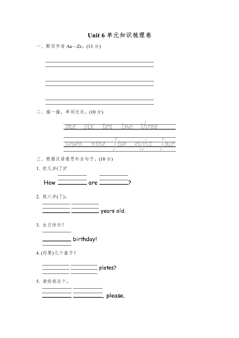 三年级英语上册Unit6单元知识梳理卷(人教PEP)_共7页