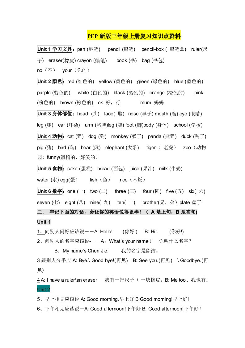 当前位置: 首页小学资源小学三年级正文 三年级英语上册复习知识点资料(人教PEP)_共4页 小学三年级 1 周前 0 0 5 以上为部分内容预览,如需源文档请登录您的会员账号进行下载! 声明:本站所有文章,如无特殊说明或标注,均为本站原创发布。任何个人或组织,在未征得本站同意时,禁止复制、盗用、采集、发布本站内容到任何网站、书籍等各类媒体平台。如若本站内容侵犯了原著者的合法权益,可联系我们进行处理。 尚学资源永久会员 打赏 收藏 海报 链接