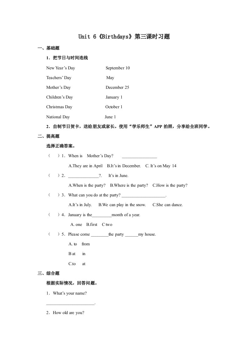 当前位置: 首页小学资源小学三年级正文 三年级英语上册Unit6习题第3课时(人教版一起点)_共3页 小学三年级 1 周前 0 0 5 以上为部分内容预览,如需源文档请登录您的会员账号进行下载! 声明:本站所有文章,如无特殊说明或标注,均为本站原创发布。任何个人或组织,在未征得本站同意时,禁止复制、盗用、采集、发布本站内容到任何网站、书籍等各类媒体平台。如若本站内容侵犯了原著者的合法权益,可联系我们进行处理。 尚学资源永久会员 打赏 收藏 海报 链接