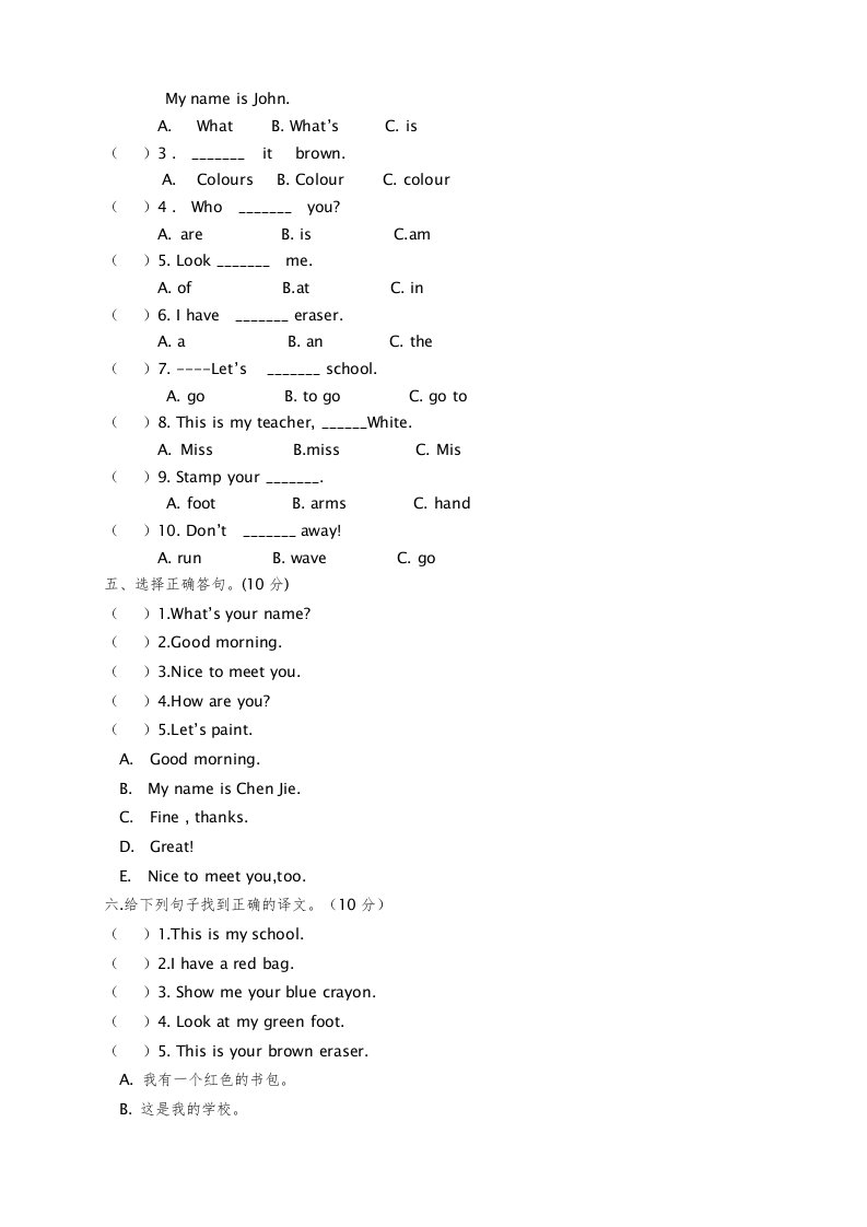 当前位置: 首页小学资源小学三年级正文 三年级英语上册期中测试卷6(人教PEP)_共4页 小学三年级 1 周前 0 0 5 以上为部分内容预览,如需源文档请登录您的会员账号进行下载! 声明:本站所有文章,如无特殊说明或标注,均为本站原创发布。任何个人或组织,在未征得本站同意时,禁止复制、盗用、采集、发布本站内容到任何网站、书籍等各类媒体平台。如若本站内容侵犯了原著者的合法权益,可联系我们进行处理。 尚学资源永久会员 打赏 收藏 海报 链接