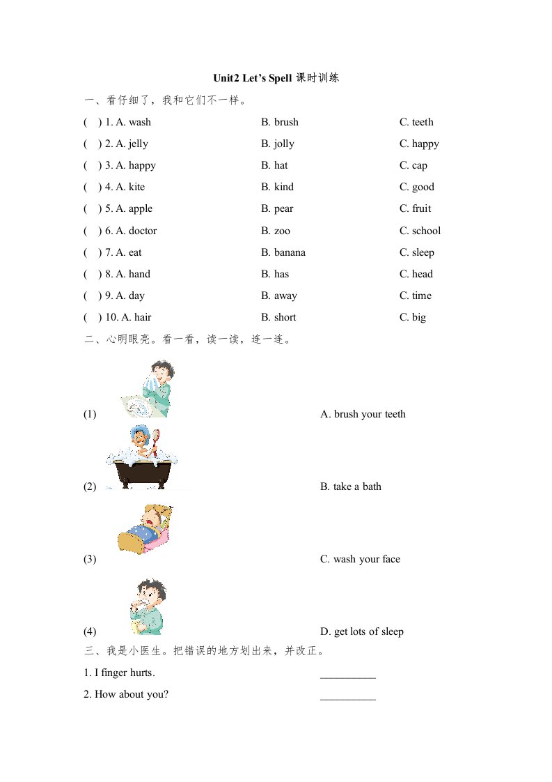 三年级英语上册Unit2_Let’s_Spell课时训练(人教版一起点)_共3页