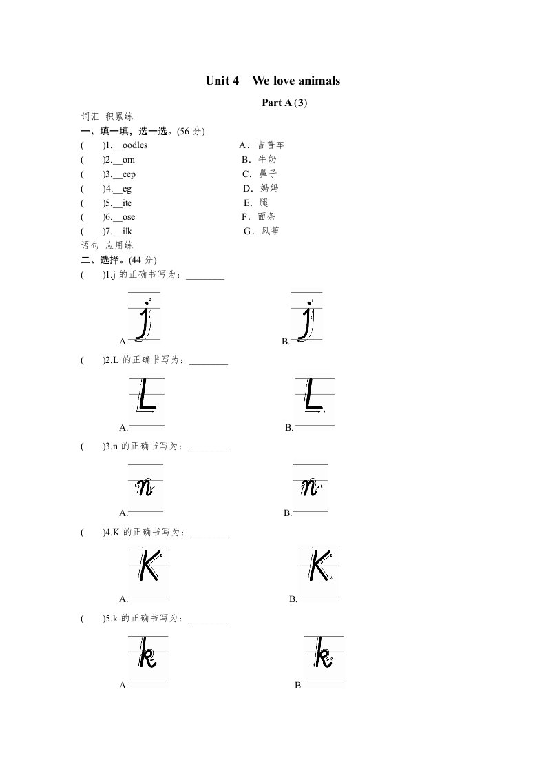 三年级英语上册课时测评unit4Weloveanimals-PartA(3)(人教PEP)_共4页