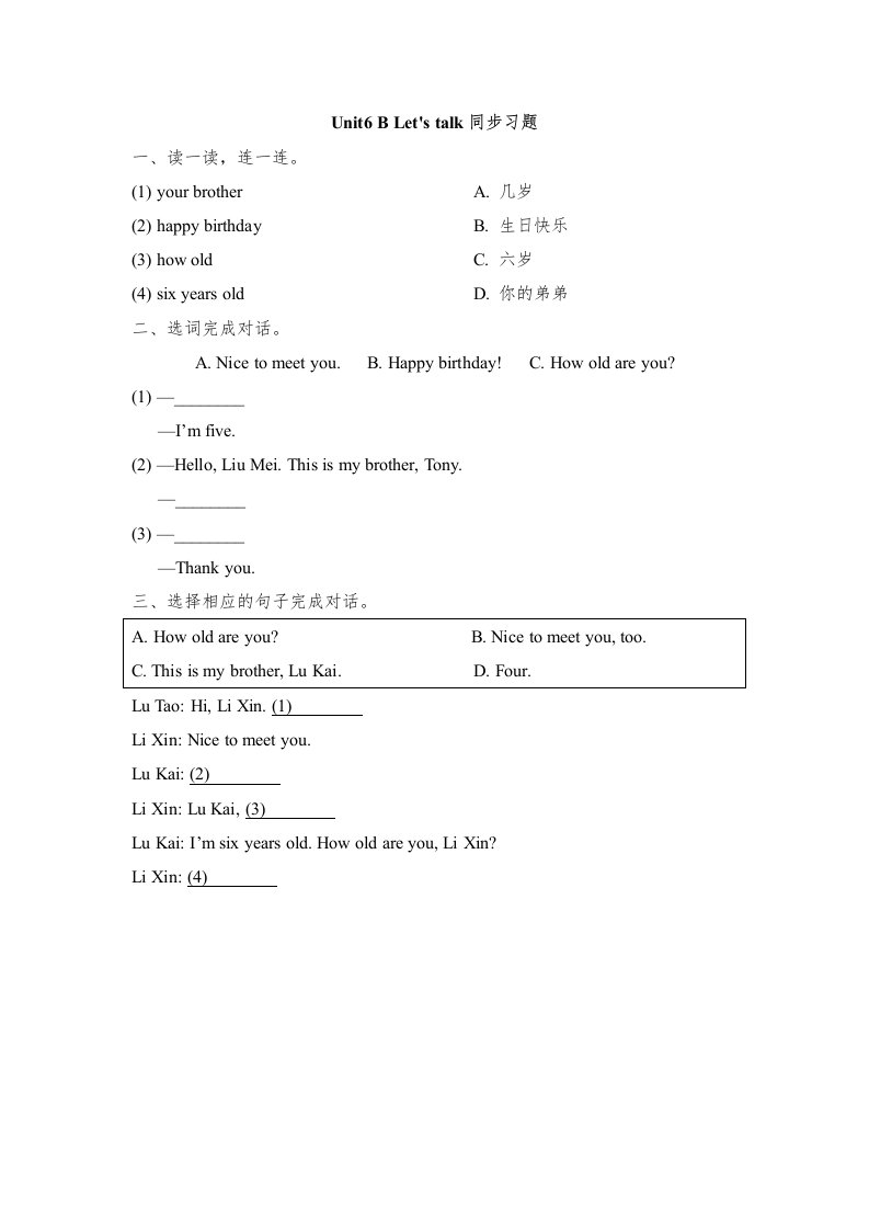 当前位置: 首页小学资源小学三年级正文 三年级英语上册Unit6_B同步习题(3)(人教版一起点)_共2页 小学三年级 1 周前 0 0 5 以上为部分内容预览,如需源文档请登录您的会员账号进行下载! 声明:本站所有文章,如无特殊说明或标注,均为本站原创发布。任何个人或组织,在未征得本站同意时,禁止复制、盗用、采集、发布本站内容到任何网站、书籍等各类媒体平台。如若本站内容侵犯了原著者的合法权益,可联系我们进行处理。 尚学资源永久会员 打赏 收藏 海报 链接