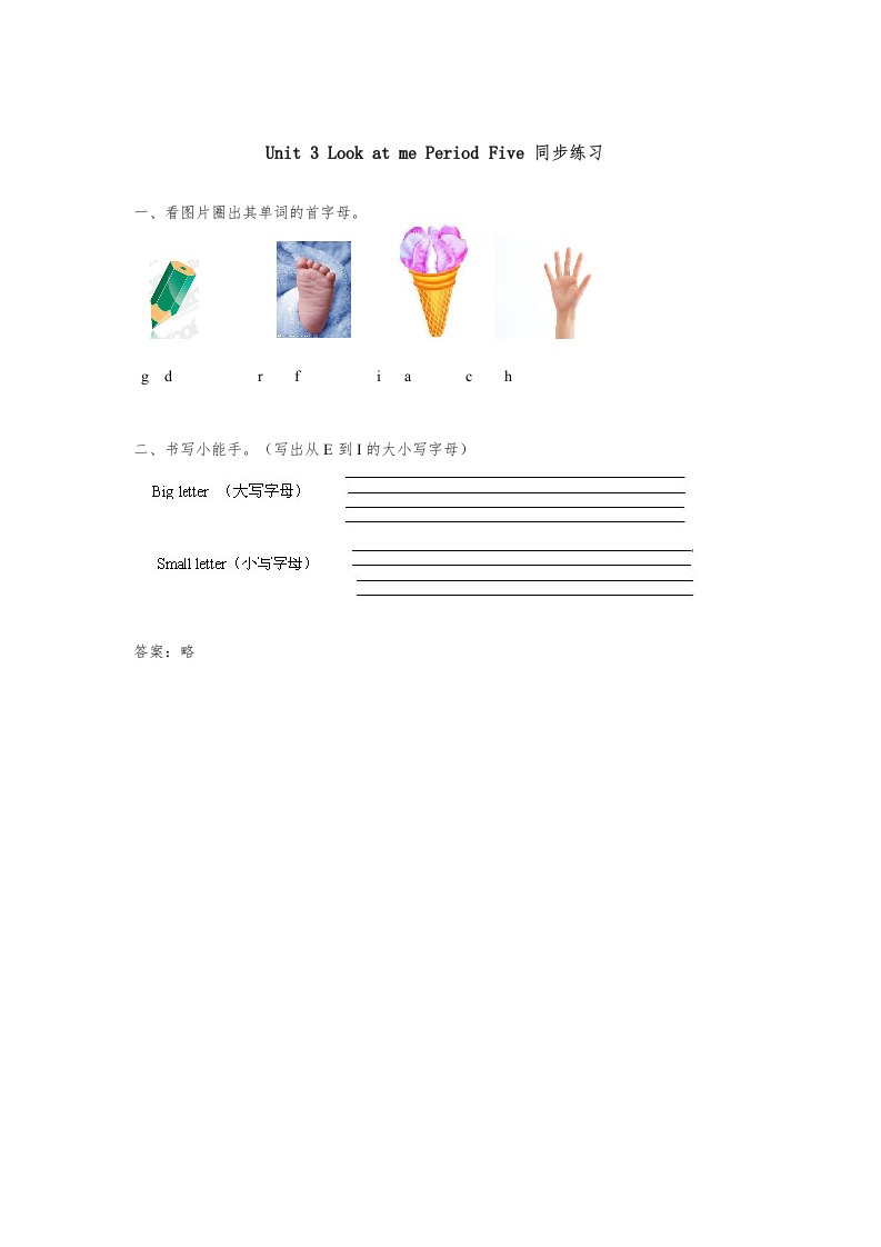 当前位置: 首页小学资源小学三年级正文 三年级英语上册Unit3《Lookatme!》第5课时同步练习(人教PEP)_共1页 小学三年级 1 周前 0 0 5 以上为部分内容预览,如需源文档请登录您的会员账号进行下载! 声明:本站所有文章,如无特殊说明或标注,均为本站原创发布。任何个人或组织,在未征得本站同意时,禁止复制、盗用、采集、发布本站内容到任何网站、书籍等各类媒体平台。如若本站内容侵犯了原著者的合法权益,可联系我们进行处理。 尚学资源永久会员 打赏 收藏 海报 链接