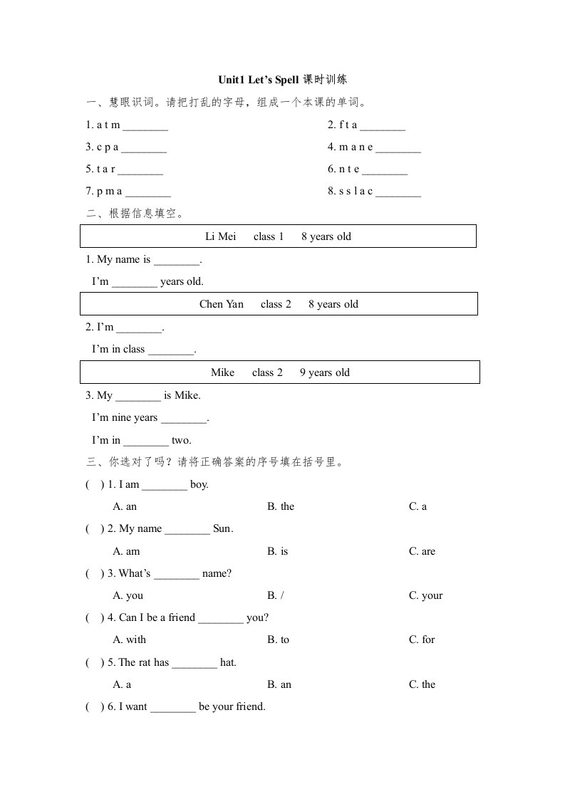 当前位置: 首页小学资源小学三年级正文 三年级英语上册Unit1_Let’s_Spell课时训练(人教版一起点)_共3页 小学三年级 1 周前 0 0 5 以上为部分内容预览,如需源文档请登录您的会员账号进行下载! 声明:本站所有文章,如无特殊说明或标注,均为本站原创发布。任何个人或组织,在未征得本站同意时,禁止复制、盗用、采集、发布本站内容到任何网站、书籍等各类媒体平台。如若本站内容侵犯了原著者的合法权益,可联系我们进行处理。 尚学资源永久会员 打赏 收藏 海报 链接