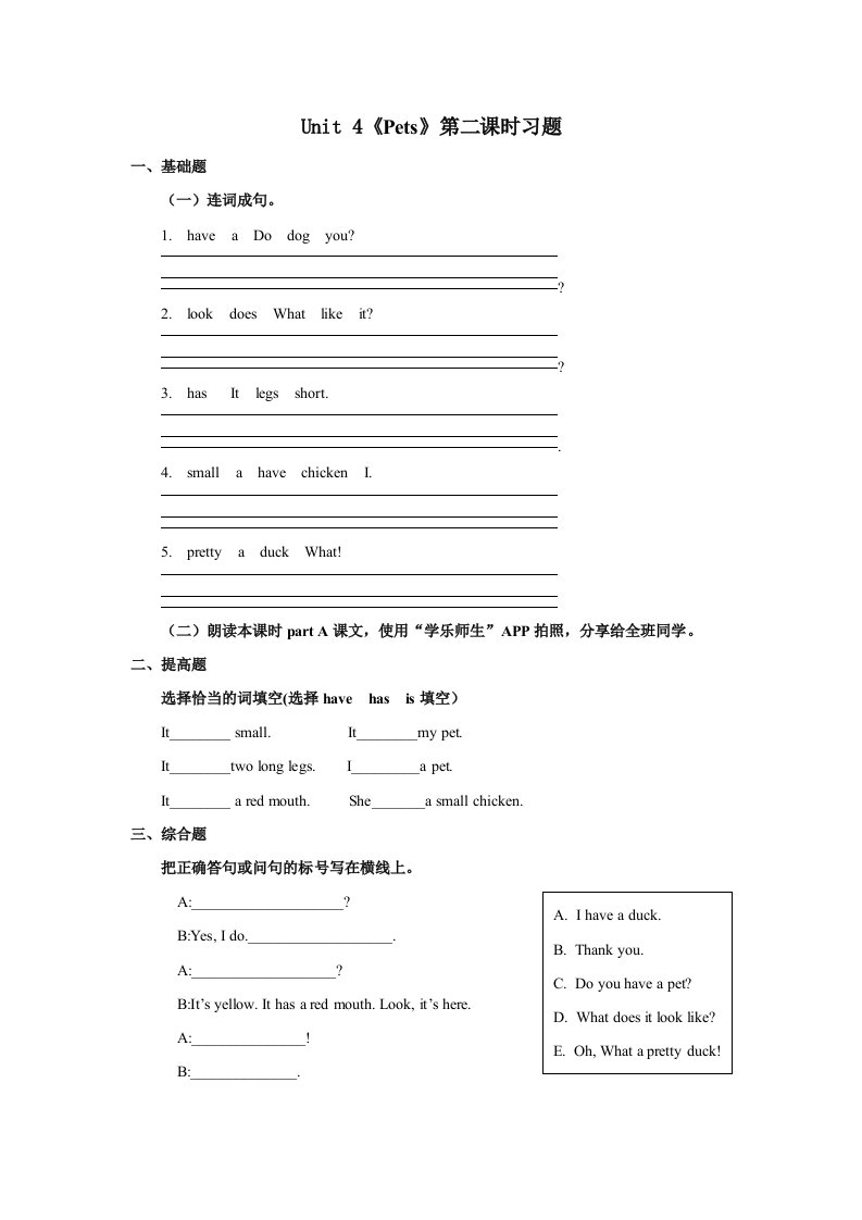 三年级英语上册Unit4习题第2课时(人教版一起点)_共2页