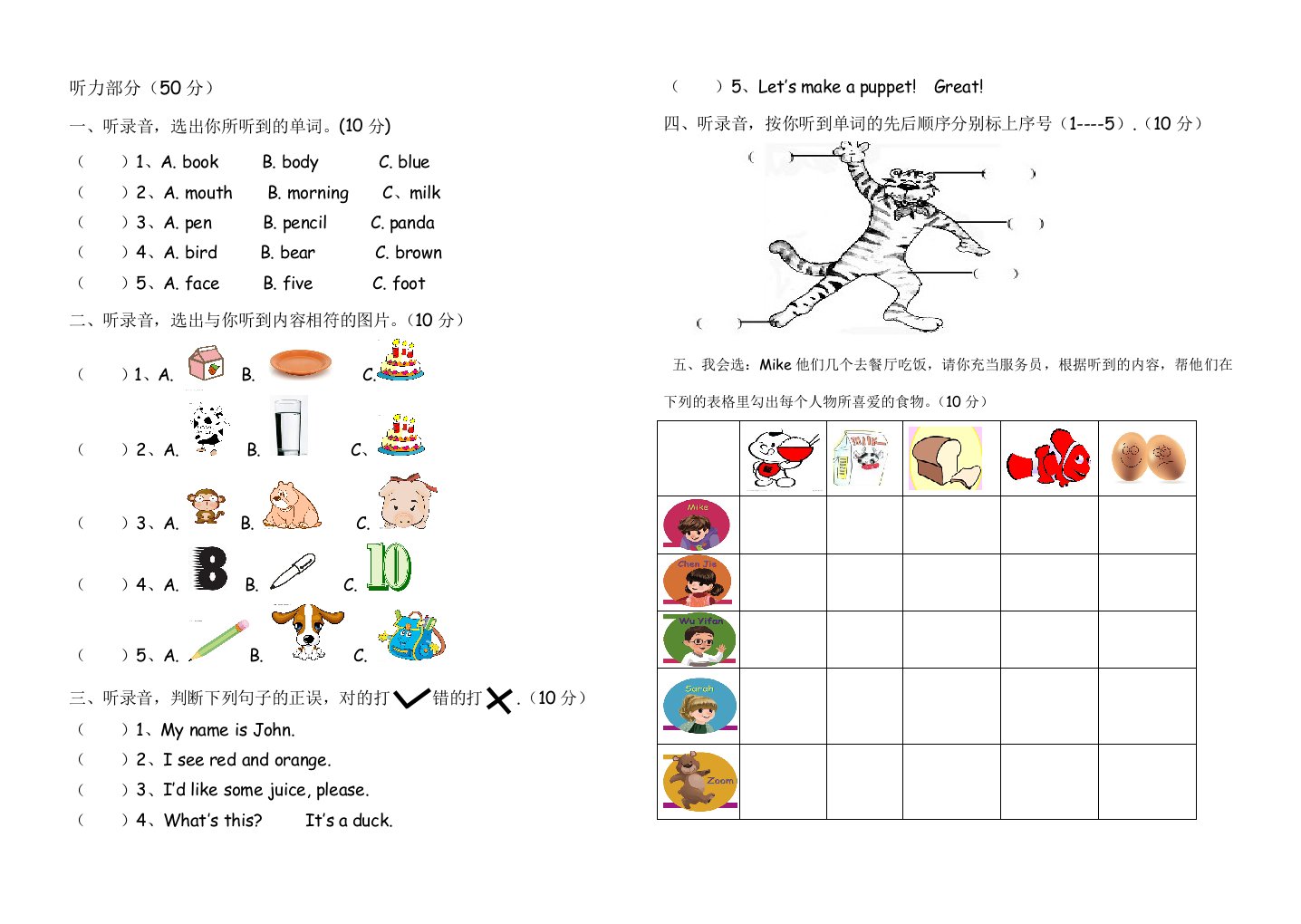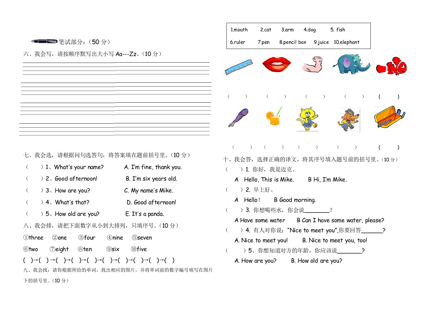 三年级英语上册英语上册期末试卷(6)(人教PEP)_共2页