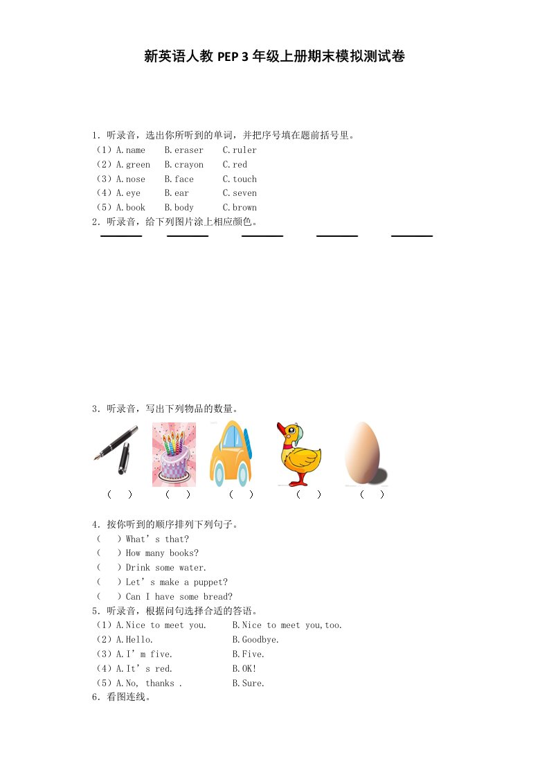 当前位置: 首页小学资源小学三年级正文 三年级英语上册期末测试卷1(人教PEP)_共5页 小学三年级 1 周前 0 0 5 以上为部分内容预览,如需源文档请登录您的会员账号进行下载! 声明:本站所有文章,如无特殊说明或标注,均为本站原创发布。任何个人或组织,在未征得本站同意时,禁止复制、盗用、采集、发布本站内容到任何网站、书籍等各类媒体平台。如若本站内容侵犯了原著者的合法权益,可联系我们进行处理。 尚学资源永久会员 打赏 收藏 海报 链接