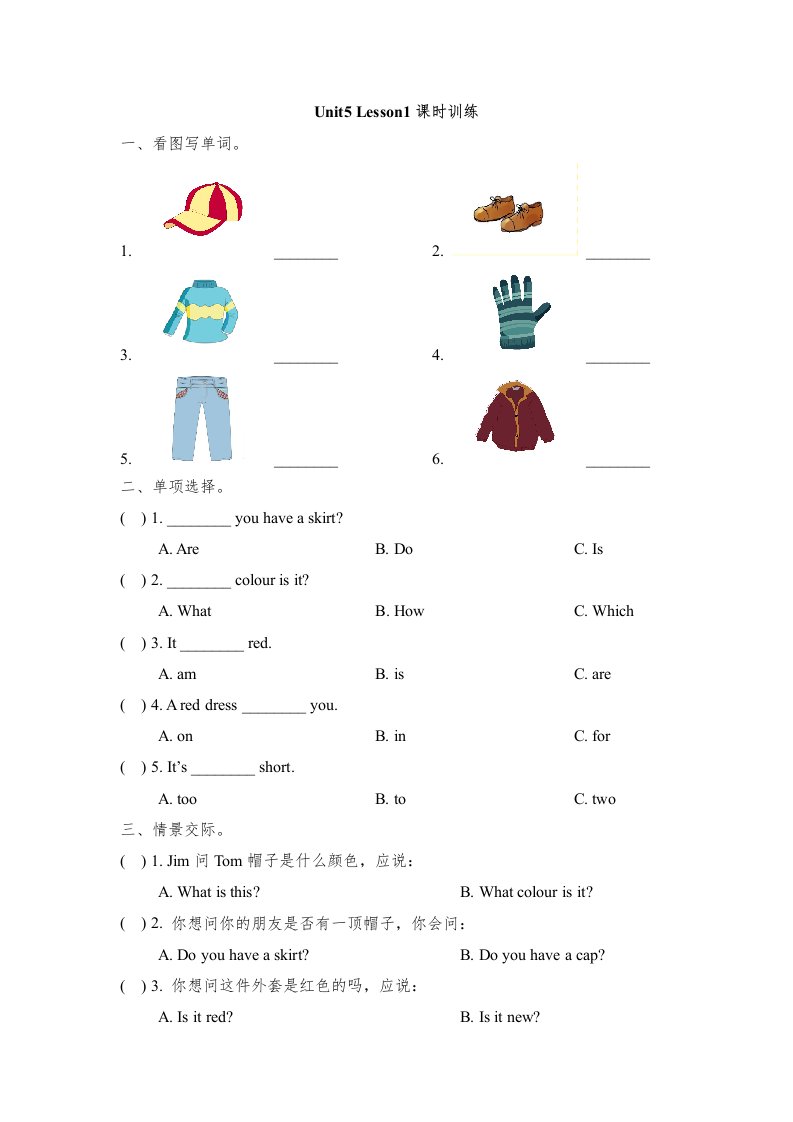 三年级英语上册Unit5_Lesson1课时训练(人教版一起点)_共3页
