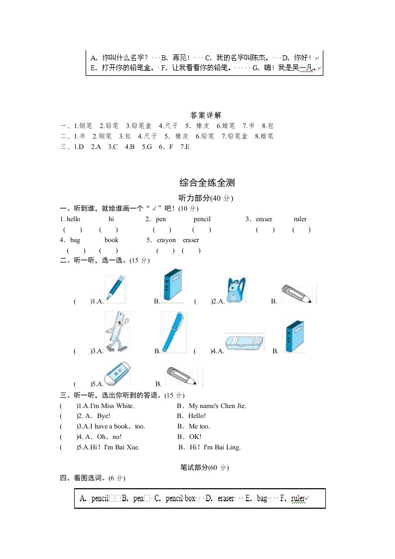 当前位置: 首页小学资源小学三年级正文 三年级英语上册Unit1Hello-单元检测(人教PEP)_共6页 小学三年级 1 周前 0 0 5 以上为部分内容预览,如需源文档请登录您的会员账号进行下载! 声明:本站所有文章,如无特殊说明或标注,均为本站原创发布。任何个人或组织,在未征得本站同意时,禁止复制、盗用、采集、发布本站内容到任何网站、书籍等各类媒体平台。如若本站内容侵犯了原著者的合法权益,可联系我们进行处理。 尚学资源永久会员 打赏 收藏 海报 链接