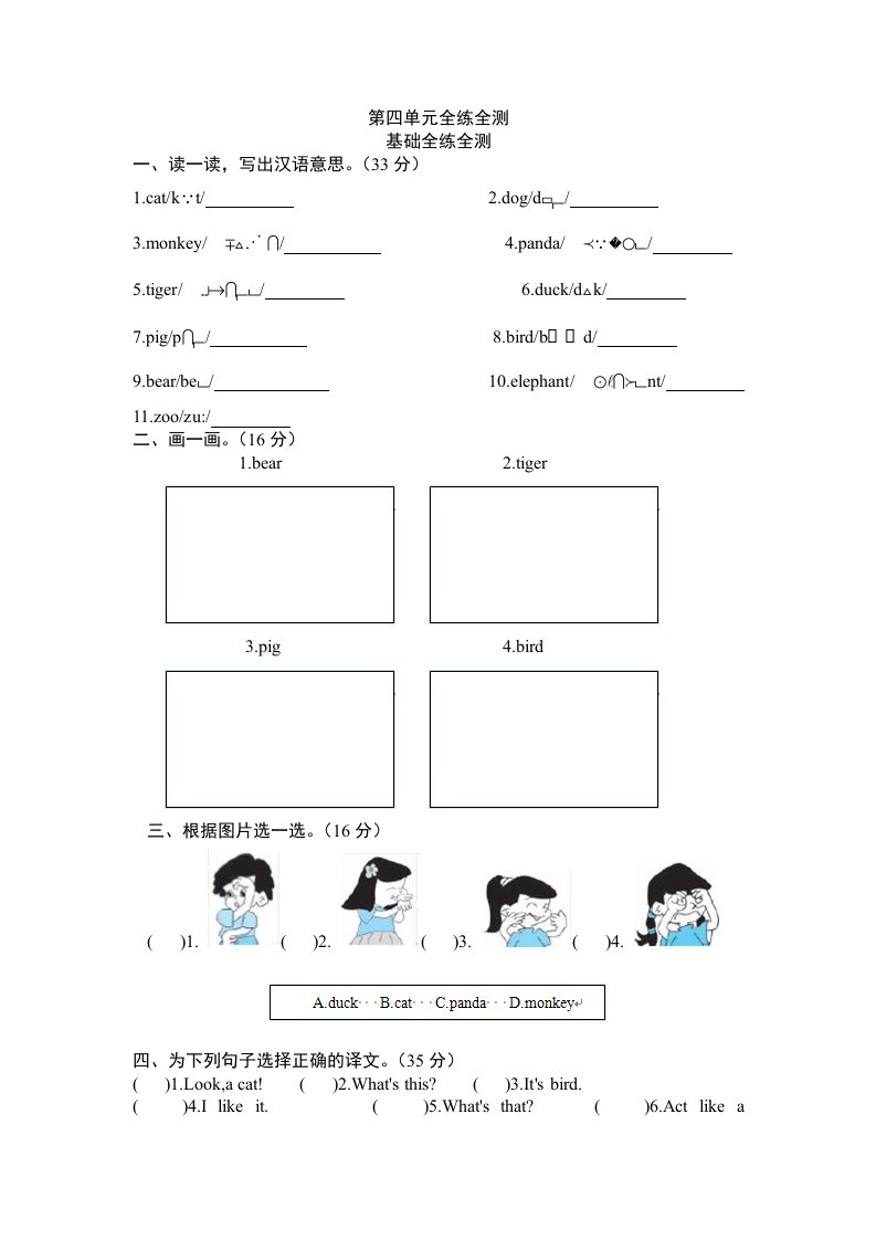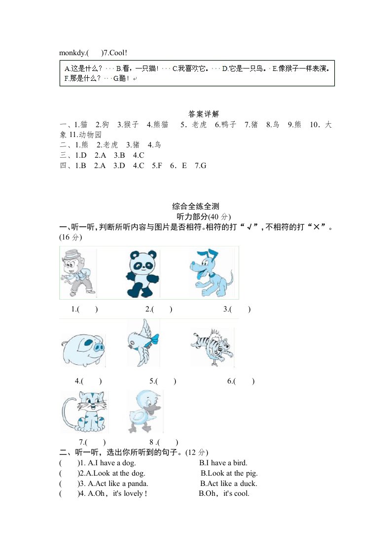 当前位置: 首页小学资源小学三年级正文 三年级英语上册Unit4Weloveanimals-单元检测(人教PEP)_共6页 小学三年级 1 周前 0 0 5 以上为部分内容预览,如需源文档请登录您的会员账号进行下载! 声明:本站所有文章,如无特殊说明或标注,均为本站原创发布。任何个人或组织,在未征得本站同意时,禁止复制、盗用、采集、发布本站内容到任何网站、书籍等各类媒体平台。如若本站内容侵犯了原著者的合法权益,可联系我们进行处理。 尚学资源永久会员 打赏 收藏 海报 链接