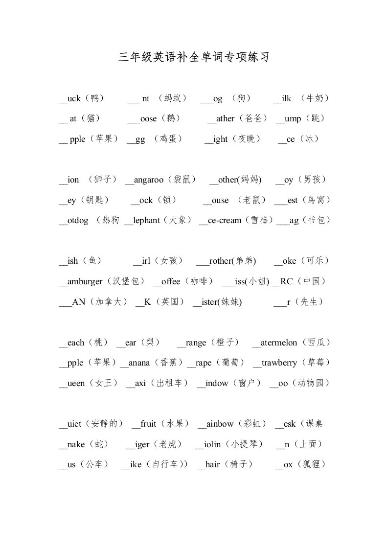 当前位置: 首页小学资源小学三年级正文 三年级英语上册补全单词专项练习(人教版一起点)_共2页 小学三年级 1 周前 0 0 5 以上为部分内容预览,如需源文档请登录您的会员账号进行下载! 声明:本站所有文章,如无特殊说明或标注,均为本站原创发布。任何个人或组织,在未征得本站同意时,禁止复制、盗用、采集、发布本站内容到任何网站、书籍等各类媒体平台。如若本站内容侵犯了原著者的合法权益,可联系我们进行处理。 尚学资源永久会员 打赏 收藏 海报 链接