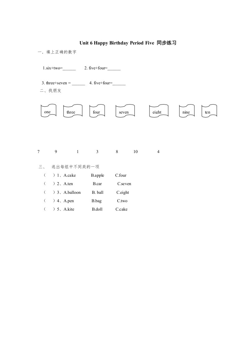 三年级英语上册Unit6《Happybirthday!》第5课时同步练习(人教PEP)_共2页