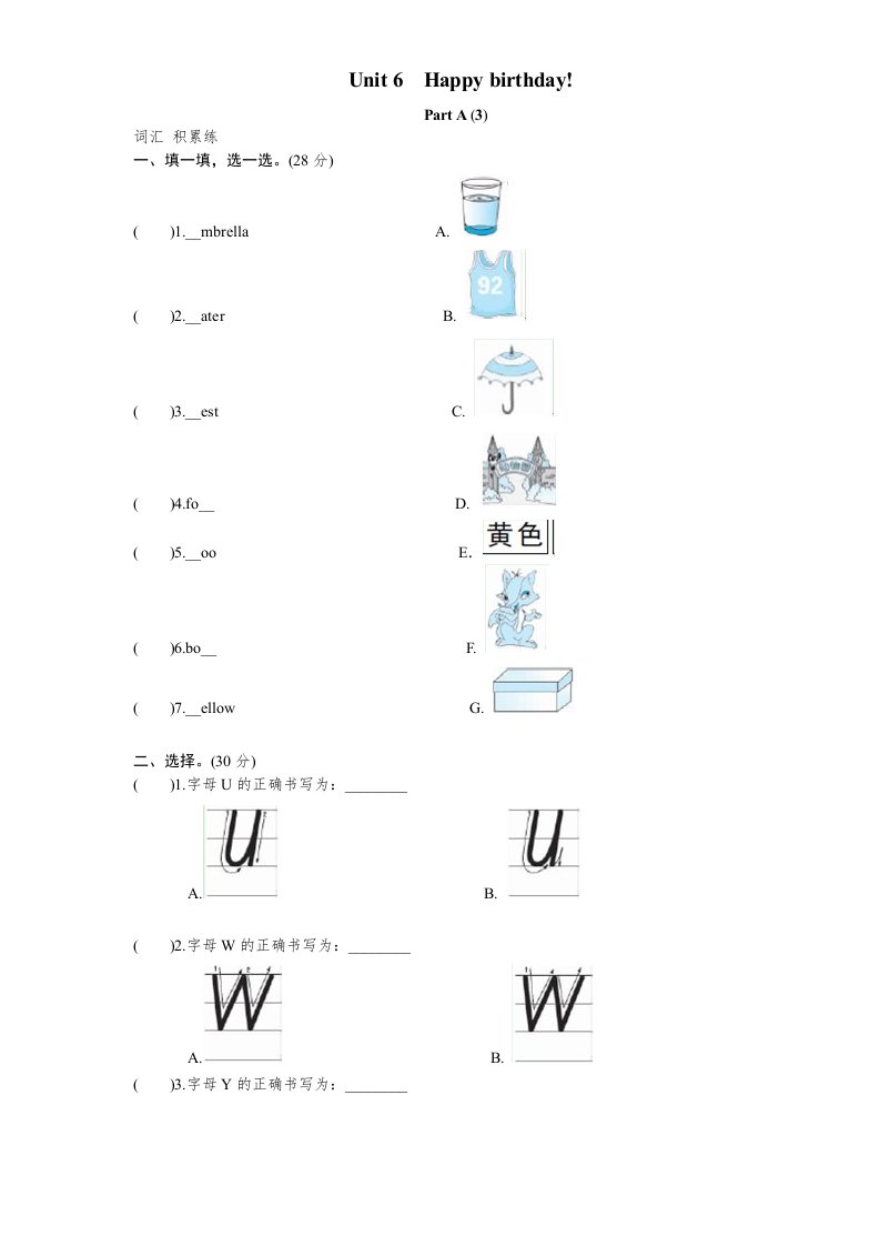 三年级英语上册课时测评unit6Happybirthday-PartA练习及答案(3)(人教PEP)_共3页
