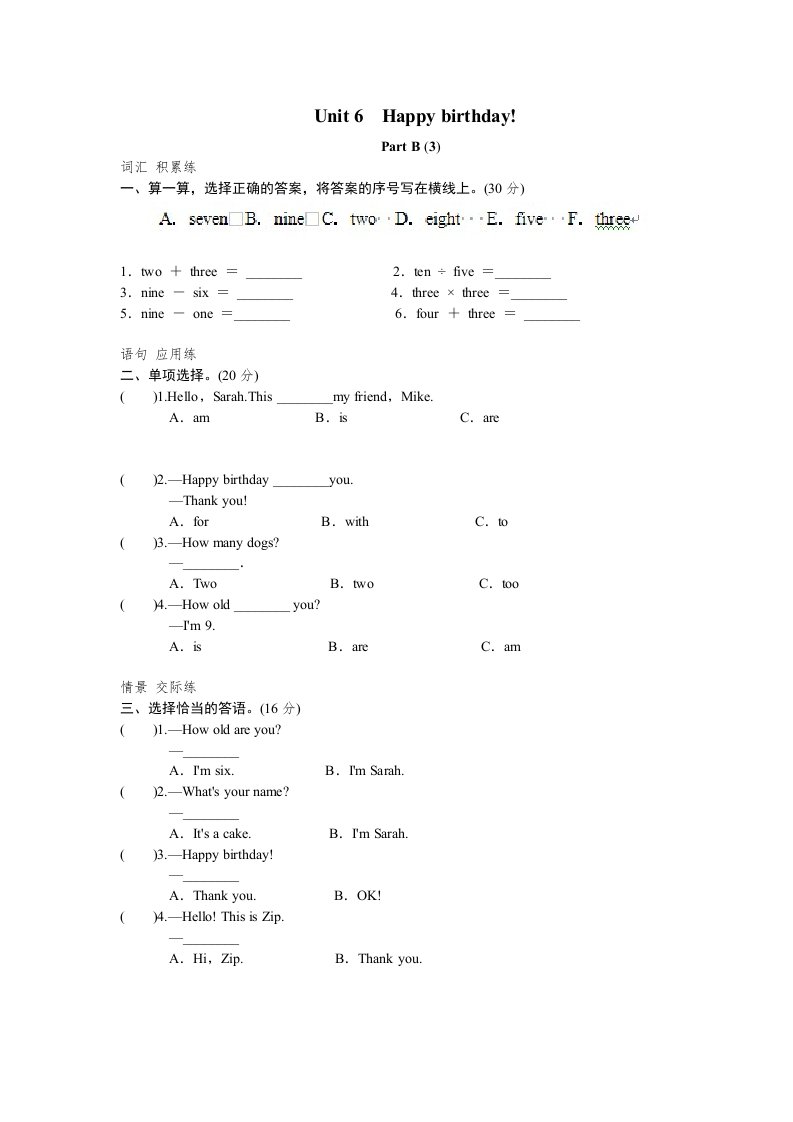 当前位置: 首页小学资源小学三年级正文 三年级英语上册课时测评unit6Happybirthday-PartB练习及答案(3)(人教PEP)_共3页 小学三年级 1 周前 0 0 5 以上为部分内容预览,如需源文档请登录您的会员账号进行下载! 声明:本站所有文章,如无特殊说明或标注,均为本站原创发布。任何个人或组织,在未征得本站同意时,禁止复制、盗用、采集、发布本站内容到任何网站、书籍等各类媒体平台。如若本站内容侵犯了原著者的合法权益,可联系我们进行处理。 尚学资源永久会员 打赏 收藏 海报 链接