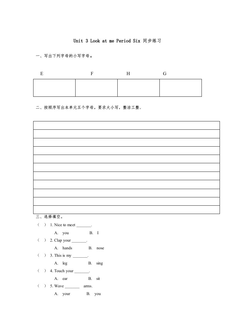 当前位置: 首页小学资源小学三年级正文 三年级英语上册Unit3《Lookatme!》第6课时同步练习(人教PEP)_共2页 小学三年级 1 周前 0 0 5 以上为部分内容预览,如需源文档请登录您的会员账号进行下载! 声明:本站所有文章,如无特殊说明或标注,均为本站原创发布。任何个人或组织,在未征得本站同意时,禁止复制、盗用、采集、发布本站内容到任何网站、书籍等各类媒体平台。如若本站内容侵犯了原著者的合法权益,可联系我们进行处理。 尚学资源永久会员 打赏 收藏 海报 链接