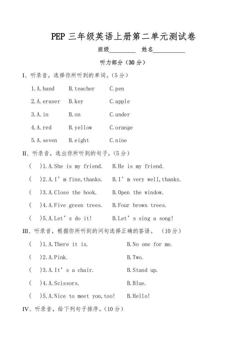 当前位置: 首页小学资源小学三年级正文 三年级英语上册单元测试-Unit2-无答案(人教PEP)_共4页 小学三年级 1 周前 0 0 5 以上为部分内容预览,如需源文档请登录您的会员账号进行下载! 声明:本站所有文章,如无特殊说明或标注,均为本站原创发布。任何个人或组织,在未征得本站同意时,禁止复制、盗用、采集、发布本站内容到任何网站、书籍等各类媒体平台。如若本站内容侵犯了原著者的合法权益,可联系我们进行处理。 尚学资源永久会员 打赏 收藏 海报 链接