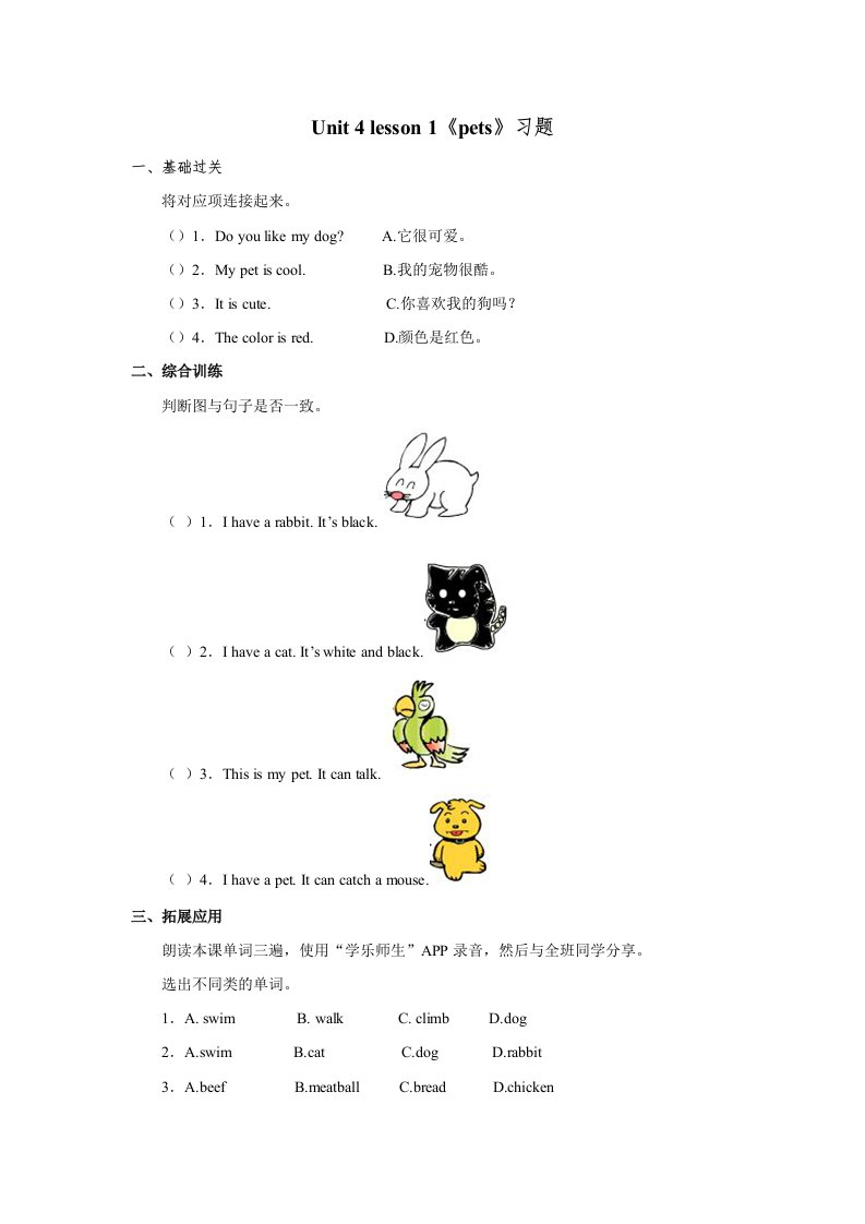三年级英语上册Unit4《Pets》Lesson1习题(1)(人教版一起点)_共3页