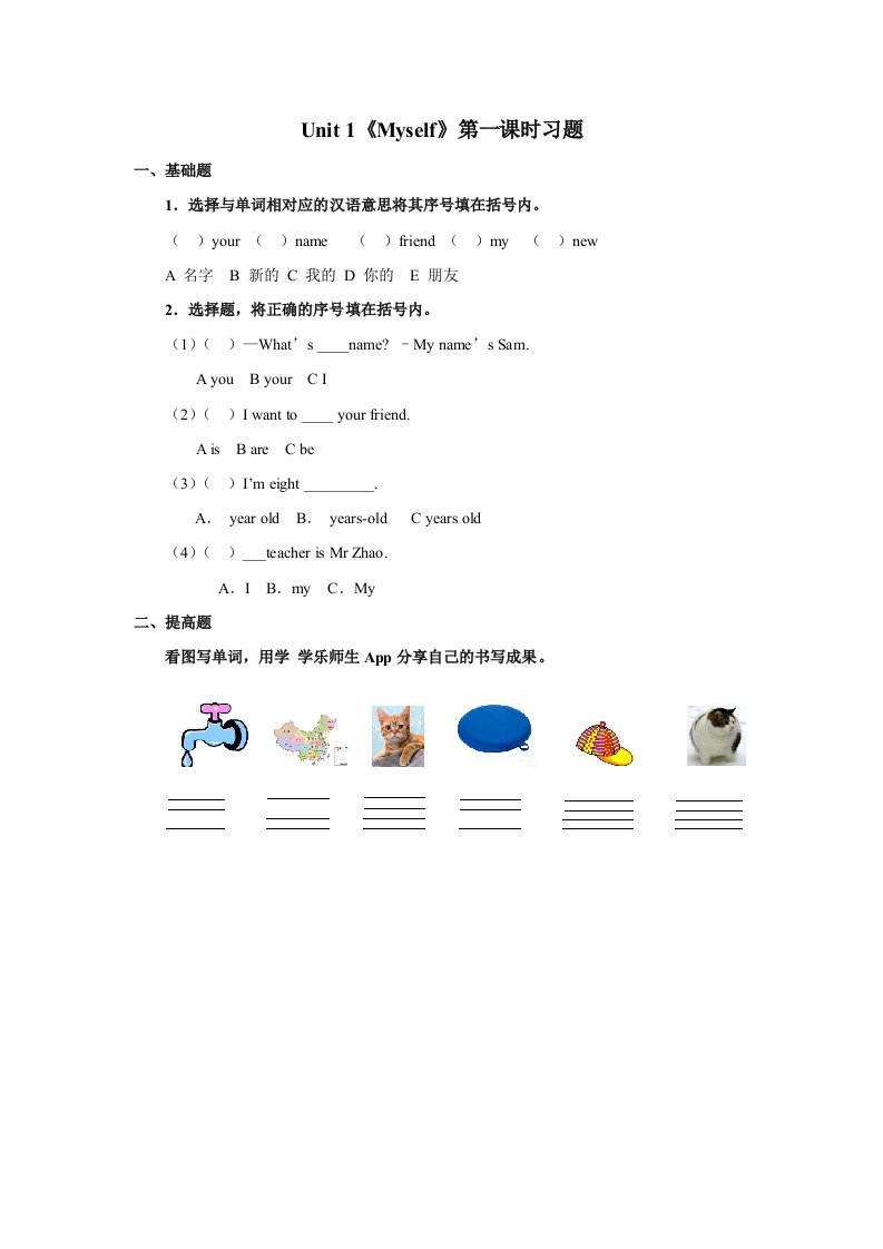 三年级英语上册Unit1《Myself》习题第1课时(人教版一起点)_共2页