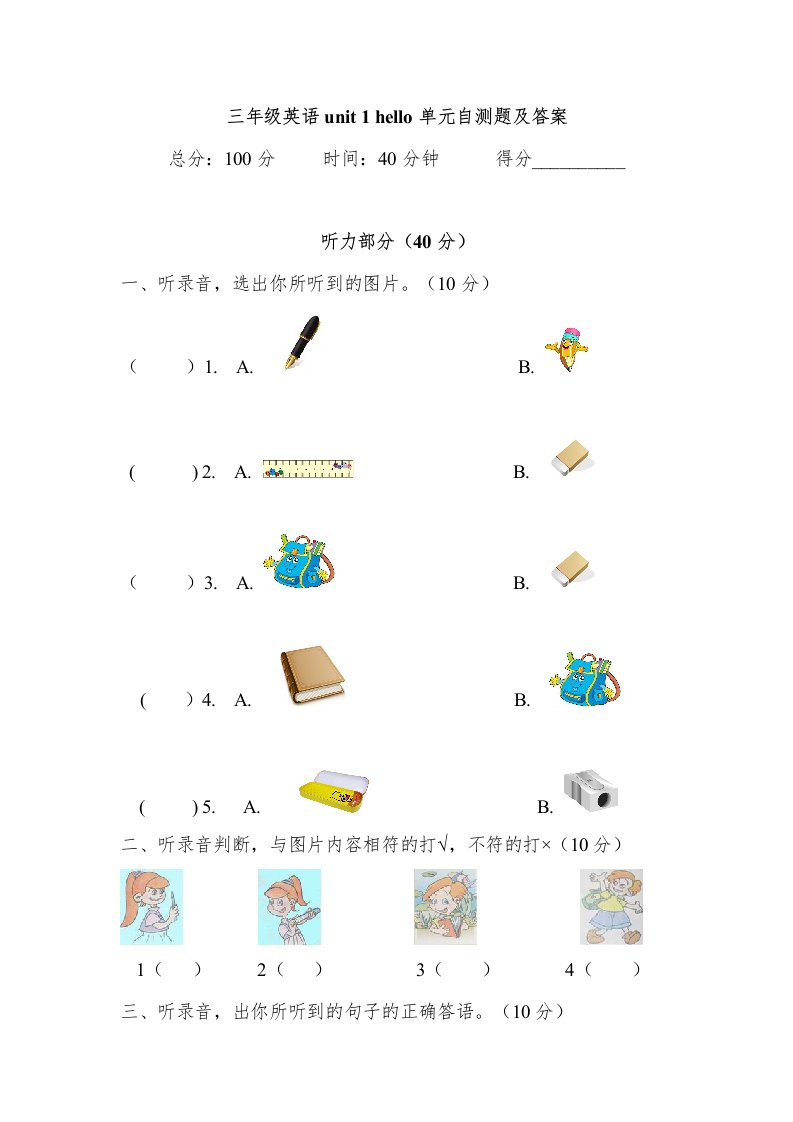 当前位置: 首页小学资源小学三年级正文 三年级英语上册Unit1Hello!单元测试及答案(人教PEP)_共7页 小学三年级 1 周前 0 0 5 以上为部分内容预览,如需源文档请登录您的会员账号进行下载! 声明:本站所有文章,如无特殊说明或标注,均为本站原创发布。任何个人或组织,在未征得本站同意时,禁止复制、盗用、采集、发布本站内容到任何网站、书籍等各类媒体平台。如若本站内容侵犯了原著者的合法权益,可联系我们进行处理。 尚学资源永久会员 打赏 收藏 海报 链接