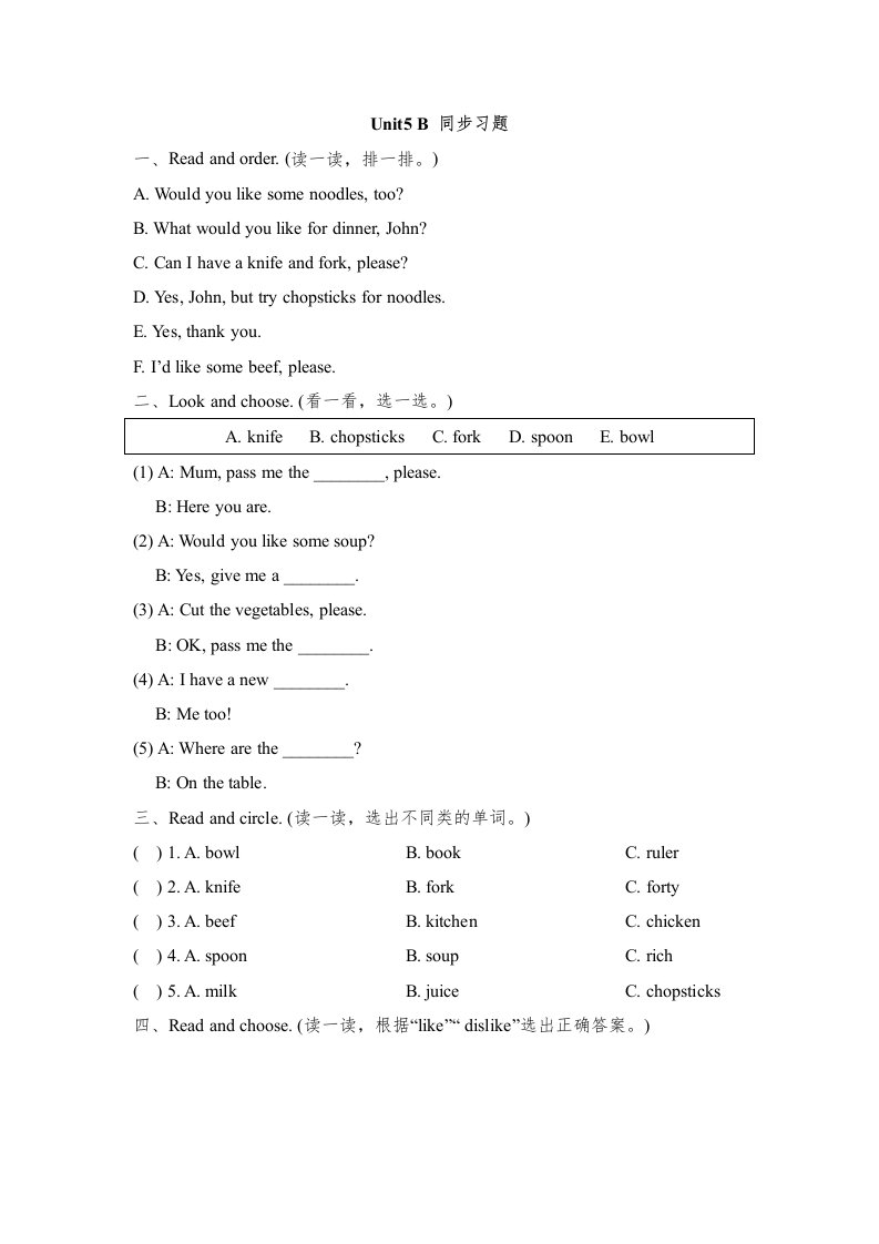 三年级英语上册Unit5_B_Let’s_learn同步习题(5)(人教版一起点)_共3页