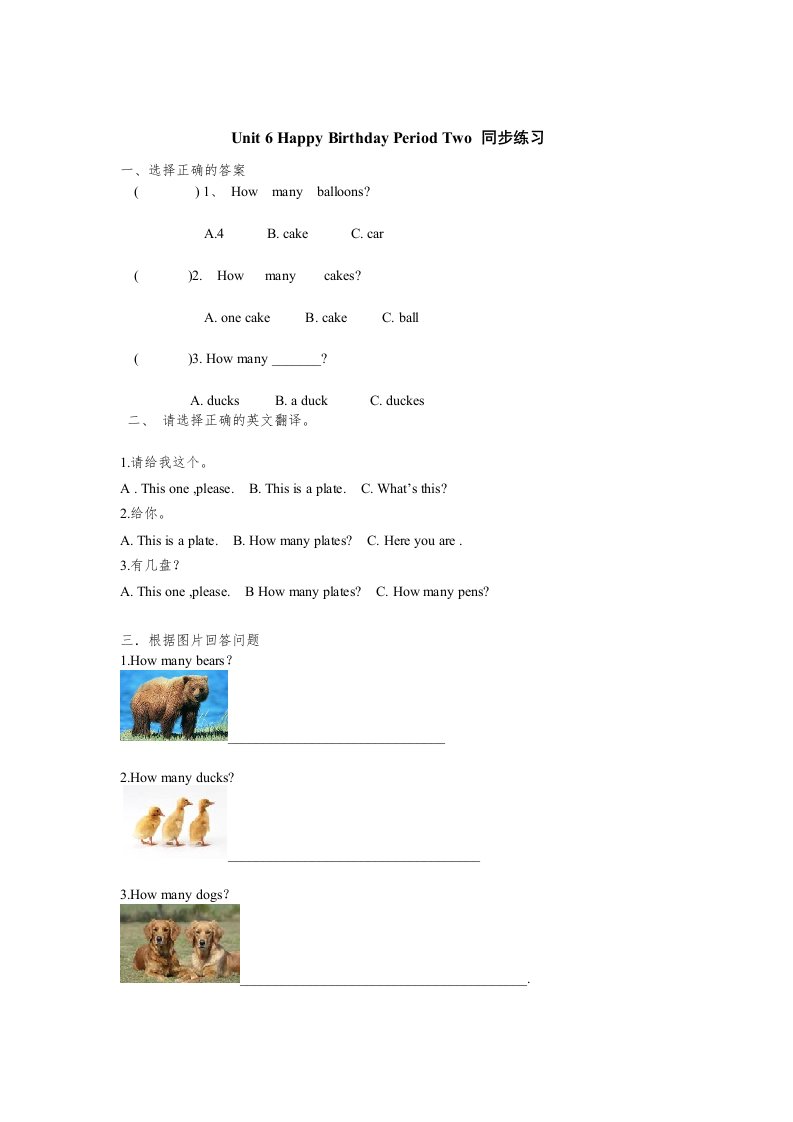 当前位置: 首页小学资源小学三年级正文 三年级英语上册Unit6《Happybirthday!》第2课时同步练习(人教PEP)_共3页 小学三年级 1 周前 0 0 5 以上为部分内容预览,如需源文档请登录您的会员账号进行下载! 声明:本站所有文章,如无特殊说明或标注,均为本站原创发布。任何个人或组织,在未征得本站同意时,禁止复制、盗用、采集、发布本站内容到任何网站、书籍等各类媒体平台。如若本站内容侵犯了原著者的合法权益,可联系我们进行处理。 尚学资源永久会员 打赏 收藏 海报 链接