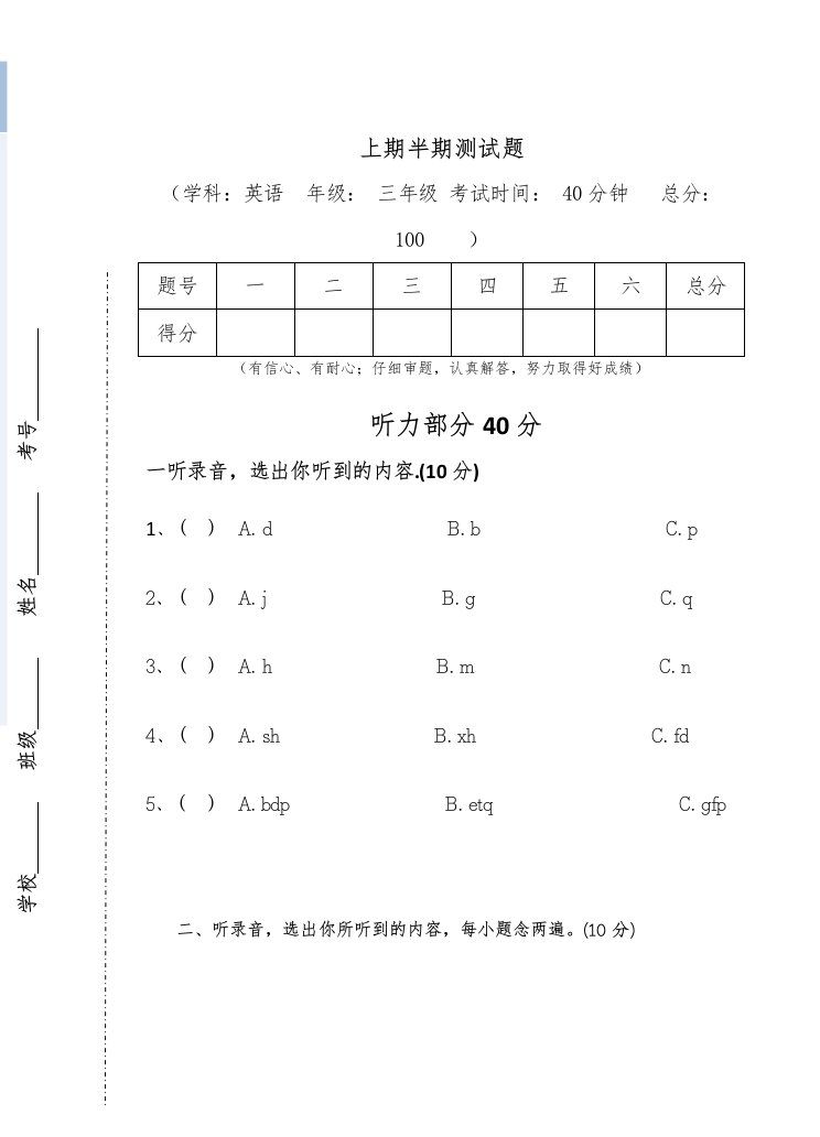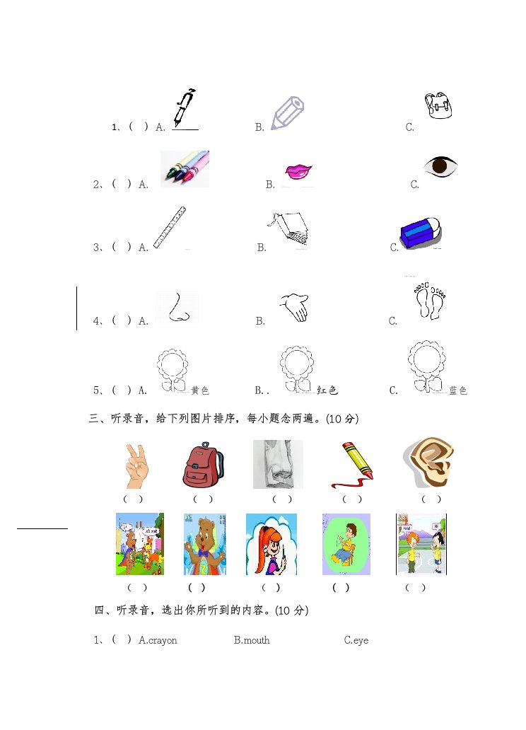 当前位置: 首页小学资源小学三年级正文 三年级英语上册新人教版上英语期中试卷(3)(人教PEP)_共5页 小学三年级 1 周前 0 0 5 以上为部分内容预览,如需源文档请登录您的会员账号进行下载! 声明:本站所有文章,如无特殊说明或标注,均为本站原创发布。任何个人或组织,在未征得本站同意时,禁止复制、盗用、采集、发布本站内容到任何网站、书籍等各类媒体平台。如若本站内容侵犯了原著者的合法权益,可联系我们进行处理。 尚学资源永久会员 打赏 收藏 海报 链接