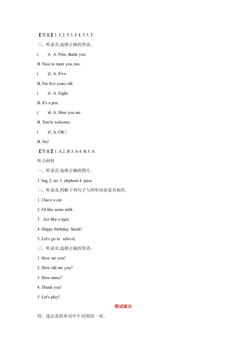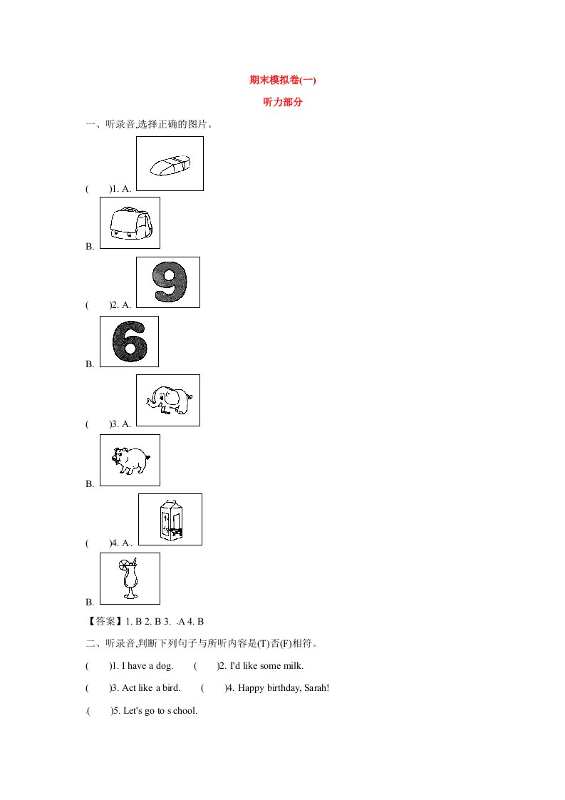 三年级英语上册英语试卷-期末模拟卷(一)(含听力材料及答案,)(人教PEP)_共7页