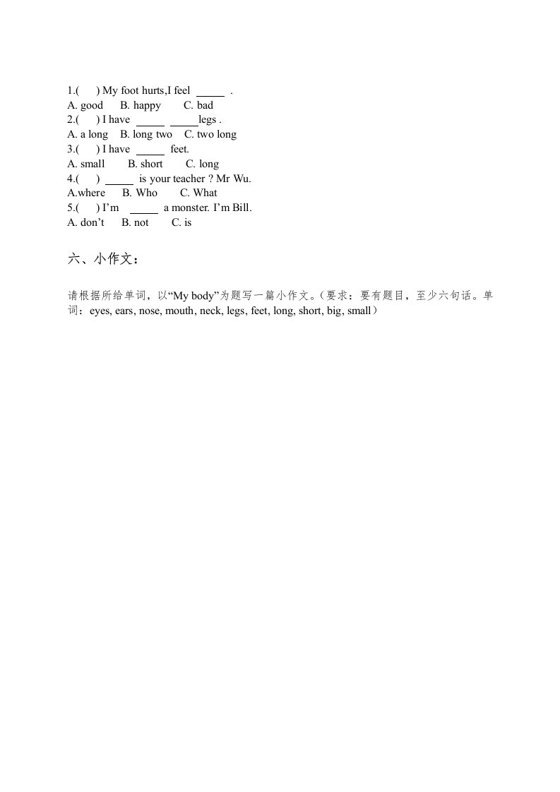 当前位置: 首页小学资源小学三年级正文 三年级英语上册第二单元练习题(人教版一起点)_共2页 小学三年级 7 天前 0 0 5 以上为部分内容预览,如需源文档请登录您的会员账号进行下载! 声明:本站所有文章,如无特殊说明或标注,均为本站原创发布。任何个人或组织,在未征得本站同意时,禁止复制、盗用、采集、发布本站内容到任何网站、书籍等各类媒体平台。如若本站内容侵犯了原著者的合法权益,可联系我们进行处理。 尚学资源永久会员 打赏 收藏 海报 链接
