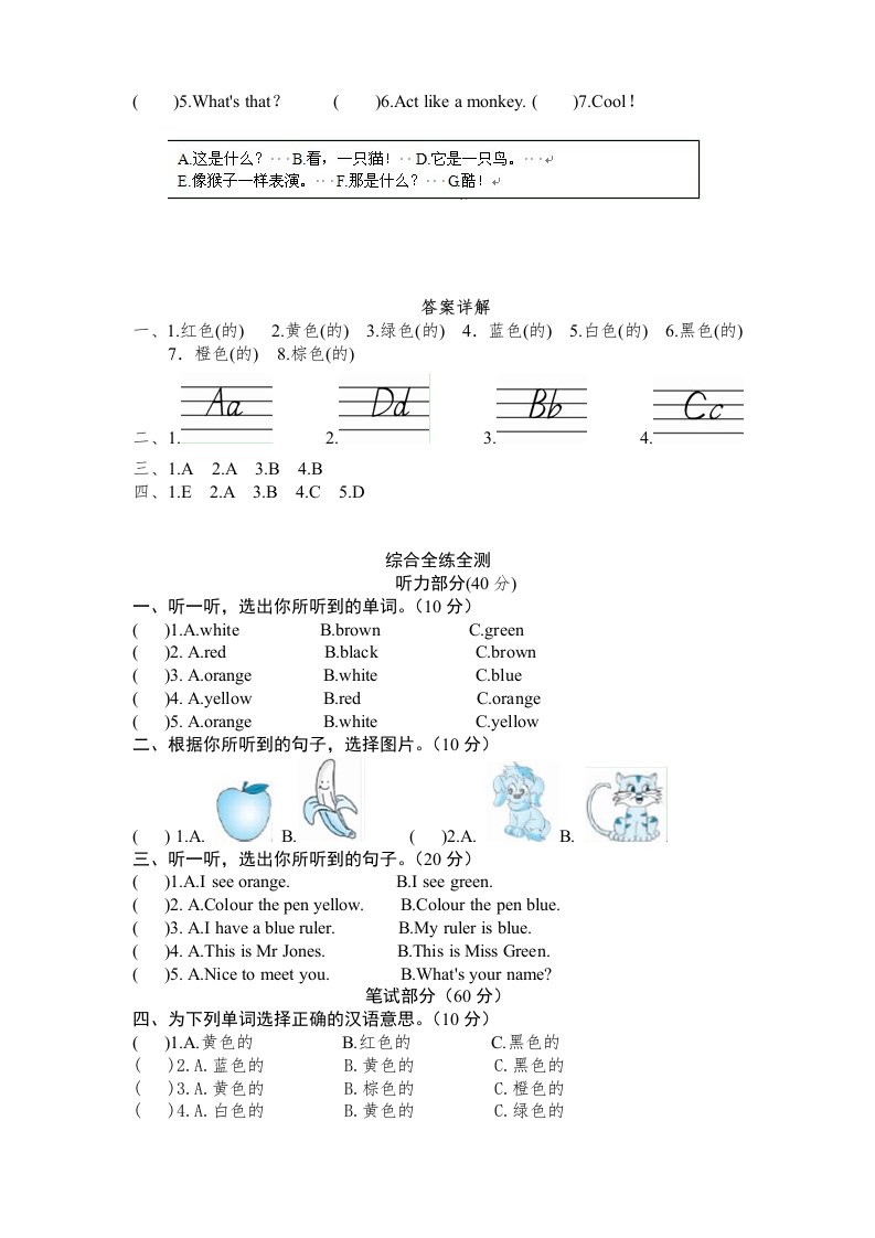 三年级英语上册Unit2《Colours》单元检测及答案(3)(人教PEP)_共5页
