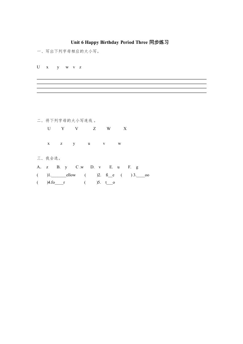当前位置: 首页小学资源小学三年级正文 三年级英语上册Unit6《Happybirthday!》第3课时同步练习(人教PEP)_共2页 小学三年级 1 周前 0 0 5 以上为部分内容预览,如需源文档请登录您的会员账号进行下载! 声明:本站所有文章,如无特殊说明或标注,均为本站原创发布。任何个人或组织,在未征得本站同意时,禁止复制、盗用、采集、发布本站内容到任何网站、书籍等各类媒体平台。如若本站内容侵犯了原著者的合法权益,可联系我们进行处理。 尚学资源永久会员 打赏 收藏 海报 链接