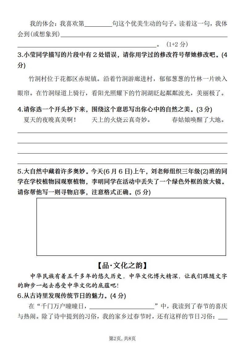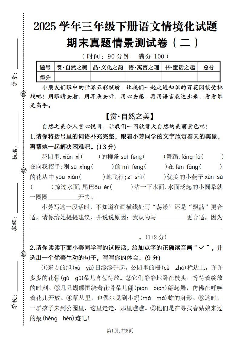 当前位置: 首页小学资源小学三年级正文 25学年三下语文期末真题情景卷二(含答案8页)_共8页 小学三年级 1 周前 0 0 5 以上为部分内容预览,如需源文档请登录您的会员账号进行下载! 声明:本站所有文章,如无特殊说明或标注,均为本站原创发布。任何个人或组织,在未征得本站同意时,禁止复制、盗用、采集、发布本站内容到任何网站、书籍等各类媒体平台。如若本站内容侵犯了原著者的合法权益,可联系我们进行处理。 尚学资源永久会员 打赏 收藏 海报 链接