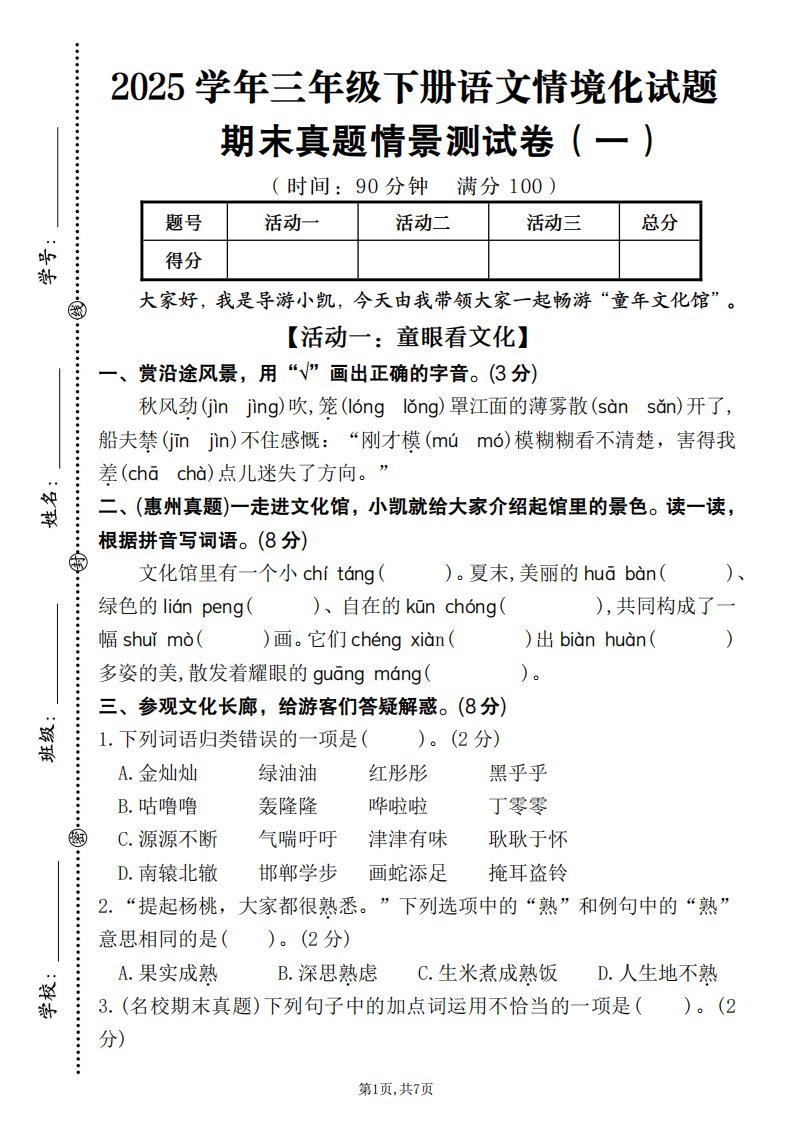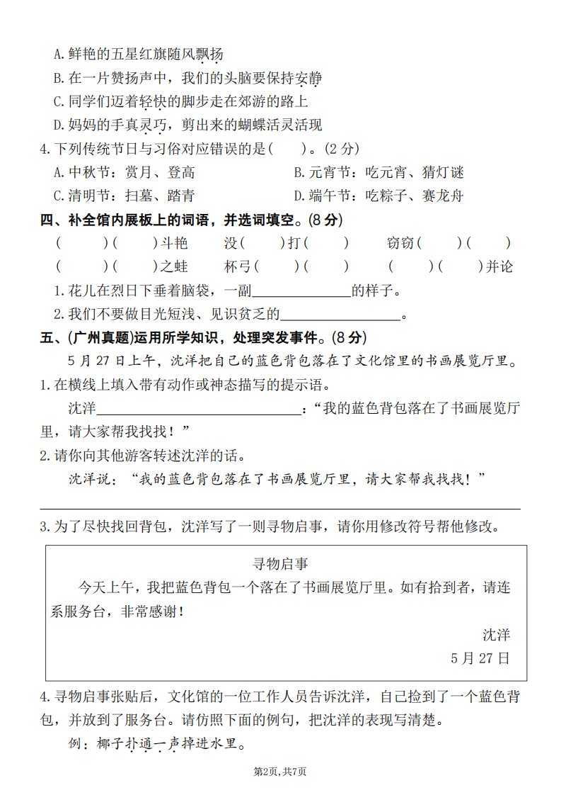 当前位置: 首页小学资源小学三年级正文 25学年三下语文期末真题情景卷一(含答案7页)_共7页 小学三年级 1 周前 0 0 5 以上为部分内容预览,如需源文档请登录您的会员账号进行下载! 声明:本站所有文章,如无特殊说明或标注,均为本站原创发布。任何个人或组织,在未征得本站同意时,禁止复制、盗用、采集、发布本站内容到任何网站、书籍等各类媒体平台。如若本站内容侵犯了原著者的合法权益,可联系我们进行处理。 尚学资源永久会员 打赏 收藏 海报 链接