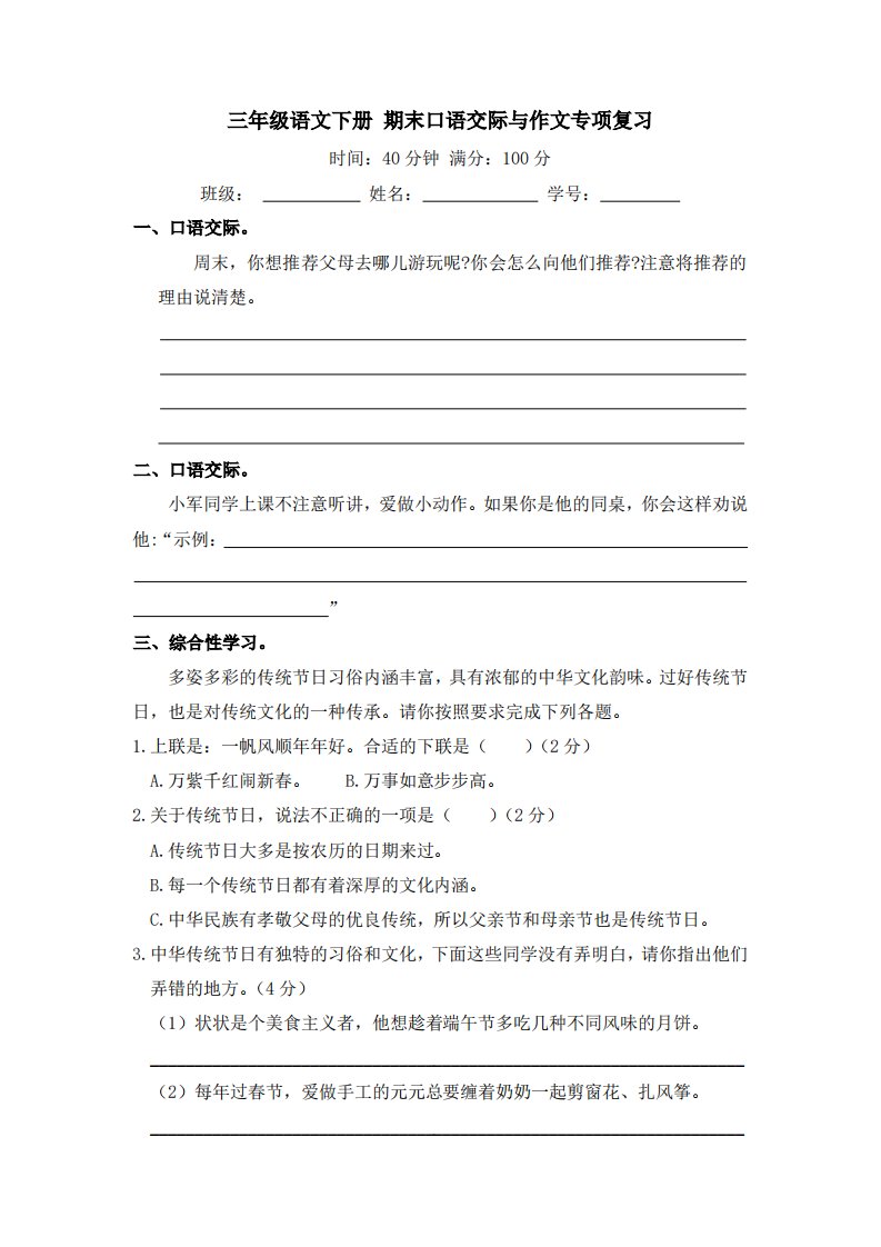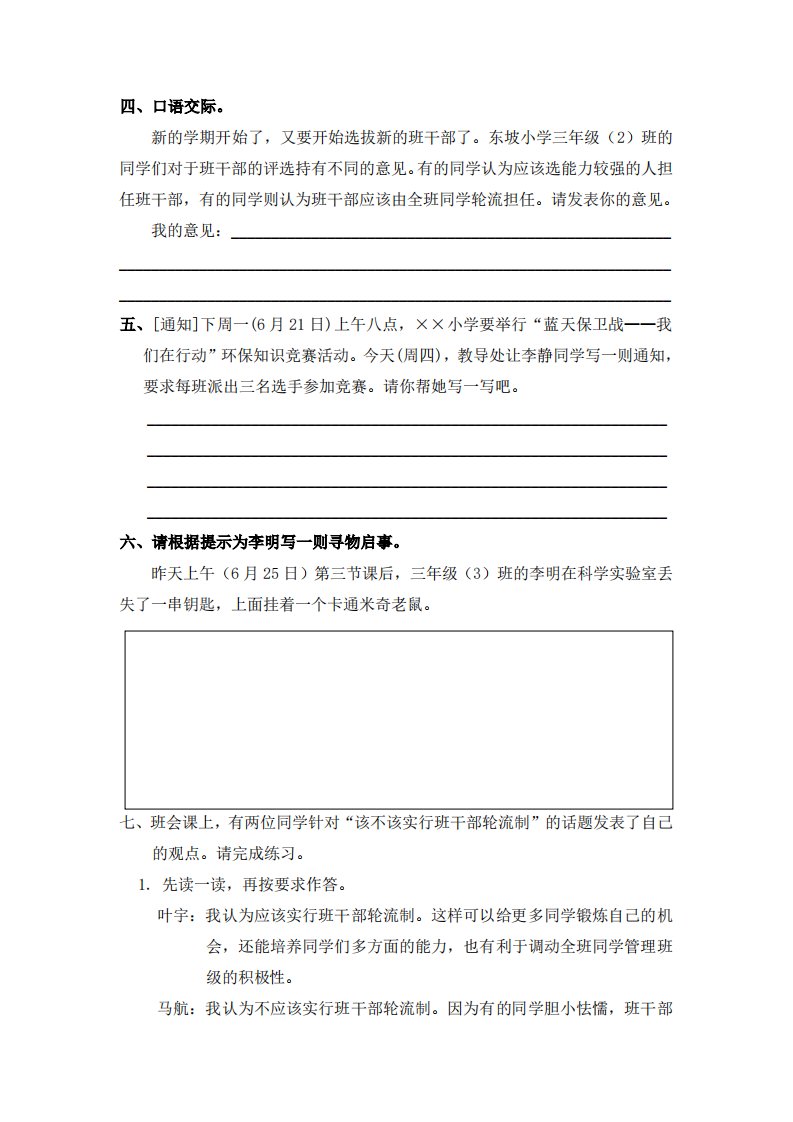 三下语文期末归类专项复习-11口语交际与作文_共7页