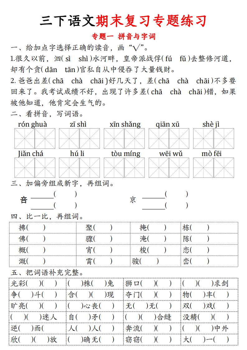 当前位置: 首页小学资源小学三年级正文 三下语文期末归类复习_共19页 小学三年级 1 周前 0 0 10 以上为部分内容预览,如需源文档请登录您的会员账号进行下载! 声明:本站所有文章,如无特殊说明或标注,均为本站原创发布。任何个人或组织,在未征得本站同意时,禁止复制、盗用、采集、发布本站内容到任何网站、书籍等各类媒体平台。如若本站内容侵犯了原著者的合法权益,可联系我们进行处理。 尚学资源永久会员 打赏 收藏 海报 链接