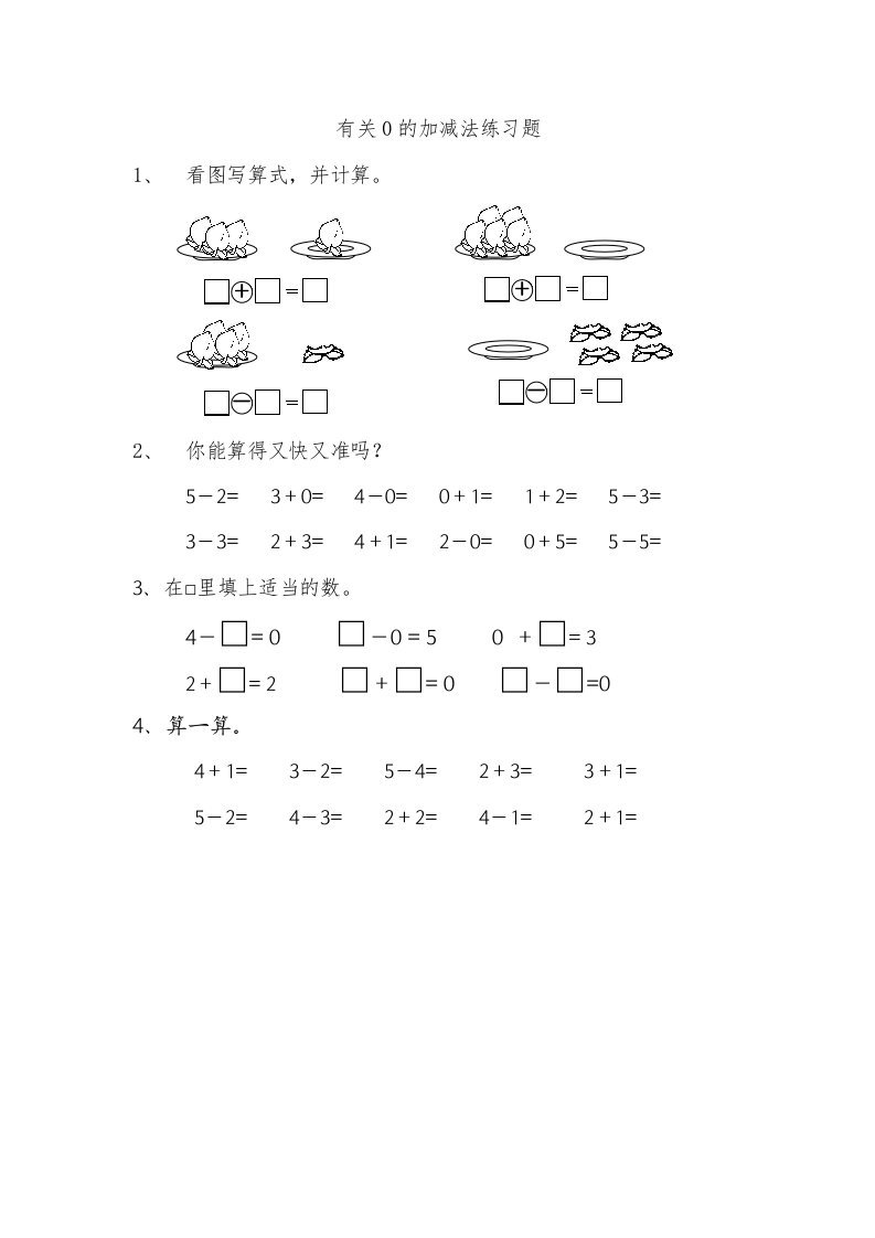 一年级数学上册8.3有关0的加减法(苏教版)_共2页