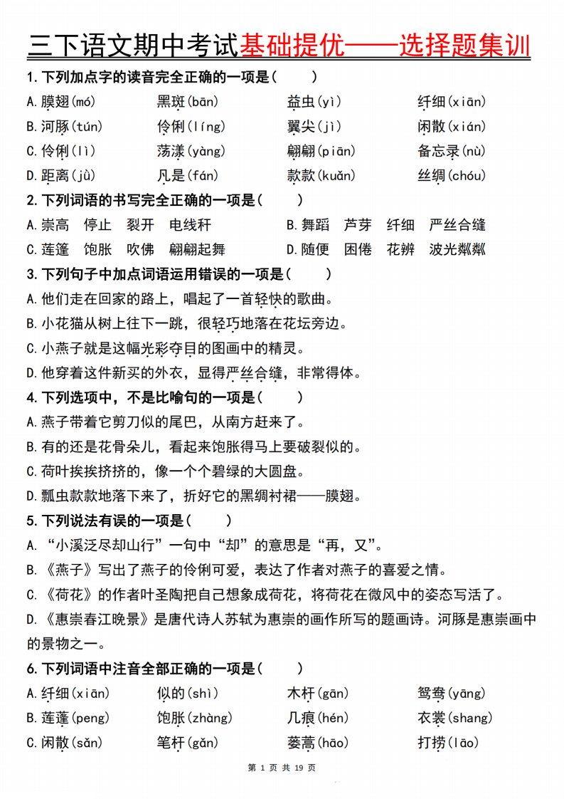 当前位置: 首页小学资源小学三年级正文 三下语文期中考试基础提优——选择题集训空白_共19页 小学三年级 1 周前 0 0 10 以上为部分内容预览,如需源文档请登录您的会员账号进行下载! 声明:本站所有文章,如无特殊说明或标注,均为本站原创发布。任何个人或组织,在未征得本站同意时,禁止复制、盗用、采集、发布本站内容到任何网站、书籍等各类媒体平台。如若本站内容侵犯了原著者的合法权益,可联系我们进行处理。 尚学资源永久会员 打赏 收藏 海报 链接