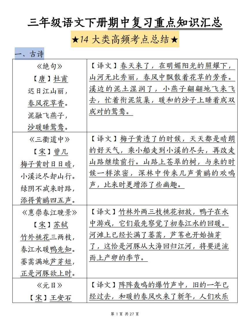 当前位置: 首页小学资源小学三年级正文 三下语文期中复习重点知识汇总-14大高频考点_共27页 小学三年级 1 周前 0 0 15 以上为部分内容预览,如需源文档请登录您的会员账号进行下载! 声明:本站所有文章,如无特殊说明或标注,均为本站原创发布。任何个人或组织,在未征得本站同意时,禁止复制、盗用、采集、发布本站内容到任何网站、书籍等各类媒体平台。如若本站内容侵犯了原著者的合法权益,可联系我们进行处理。 尚学资源永久会员 打赏 收藏 海报 链接